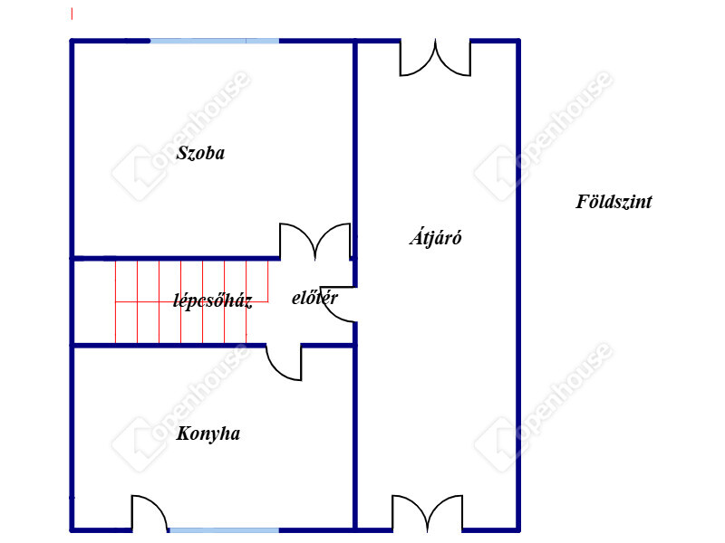 - A földszinten található nagy világos nappali, konyha étkezővel, előszoba, lépcsőház.