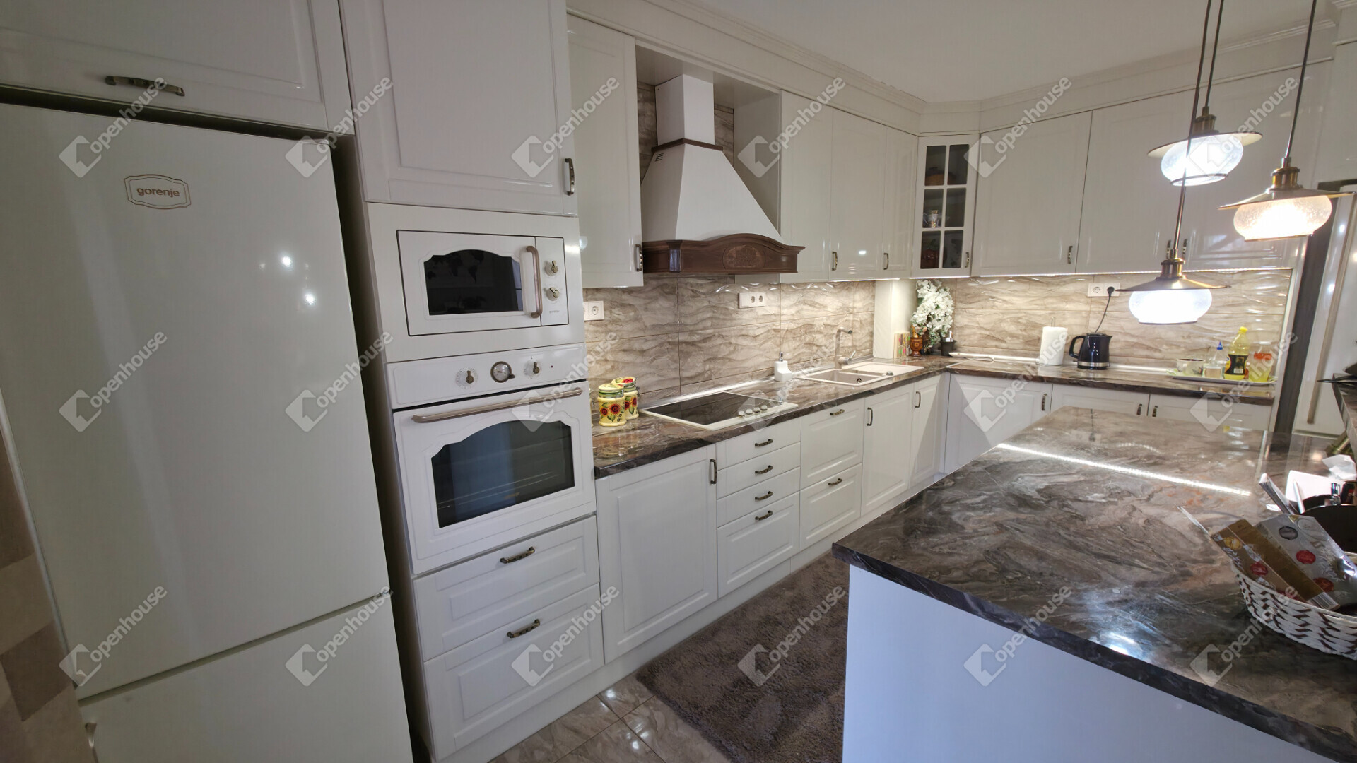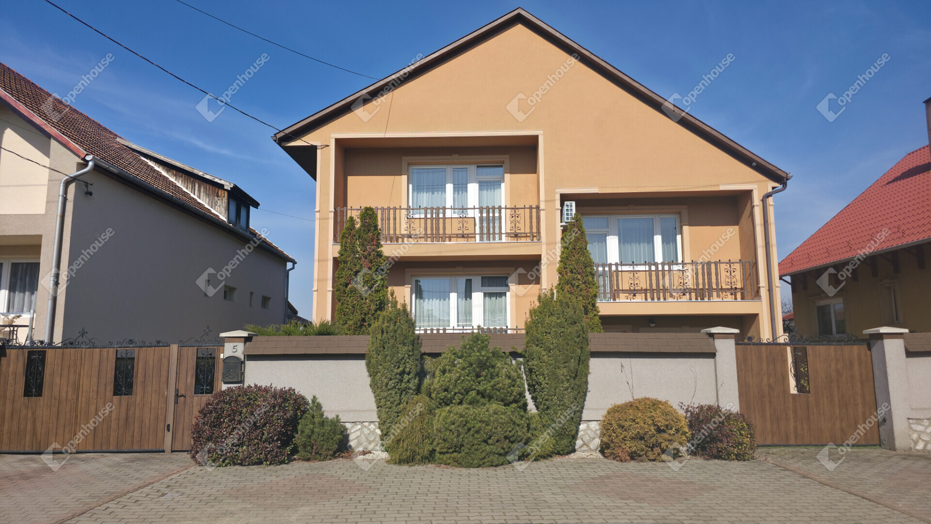 - 5 hálószoba, amerikai konyhás nappali és tágas konyha étkezővel, 2 fürdőszoba, fedett terasz kilátással a gondozott kertre és 3 loggia található benne