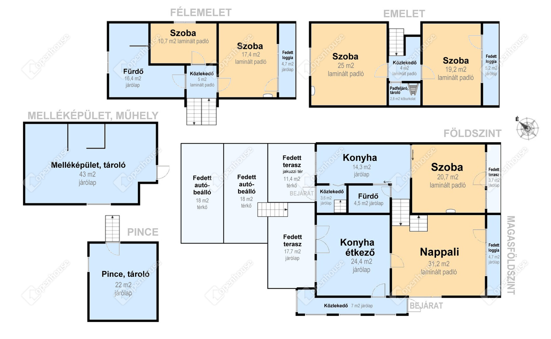 | Nappali | 31.20 m2 | Laminált padló |