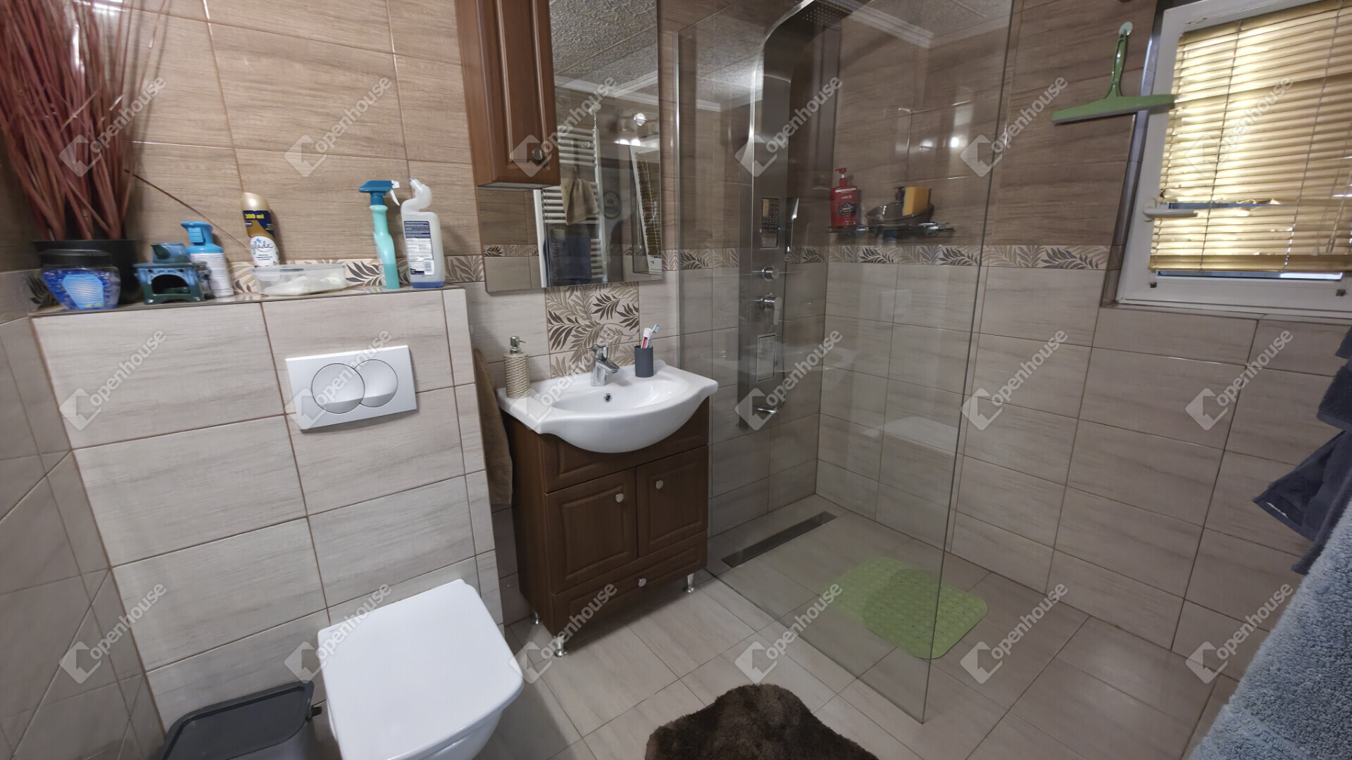 - a szobák és a közlekedők jó állapotú laminált padlóval, a többi helyiség minőségi kerámia járólappal burkolt
