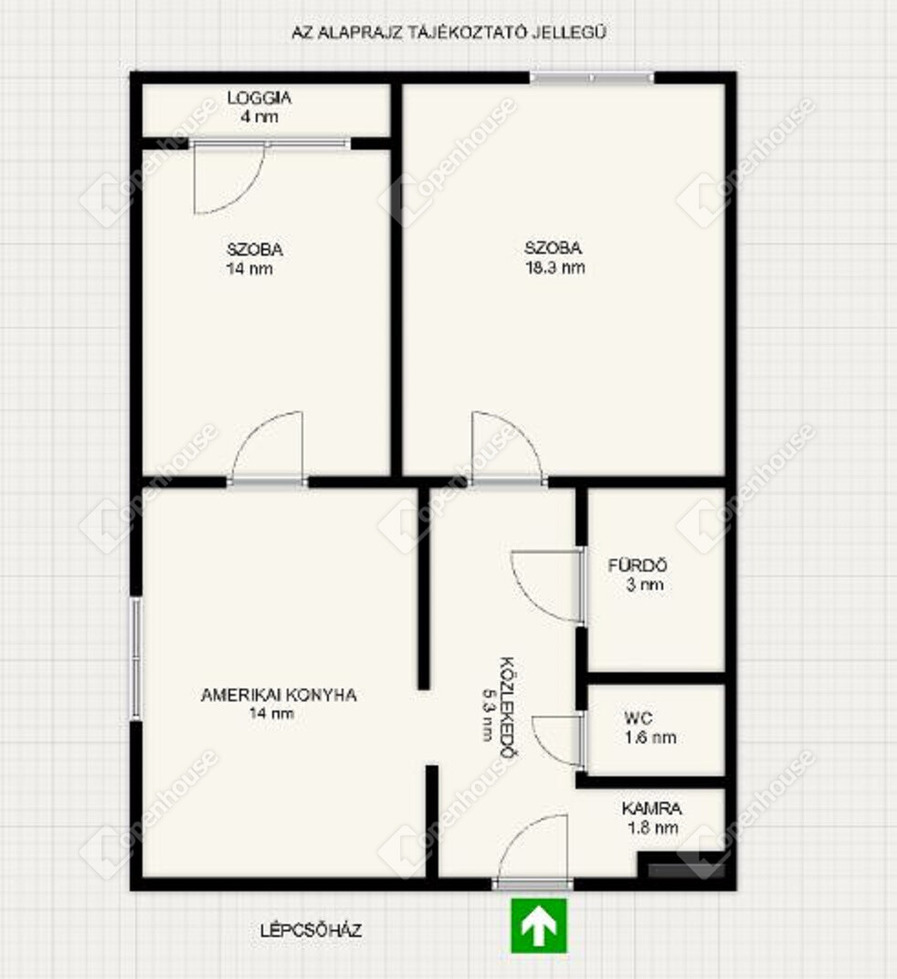 | Szoba | 18.30 m2 | Laminált padló |