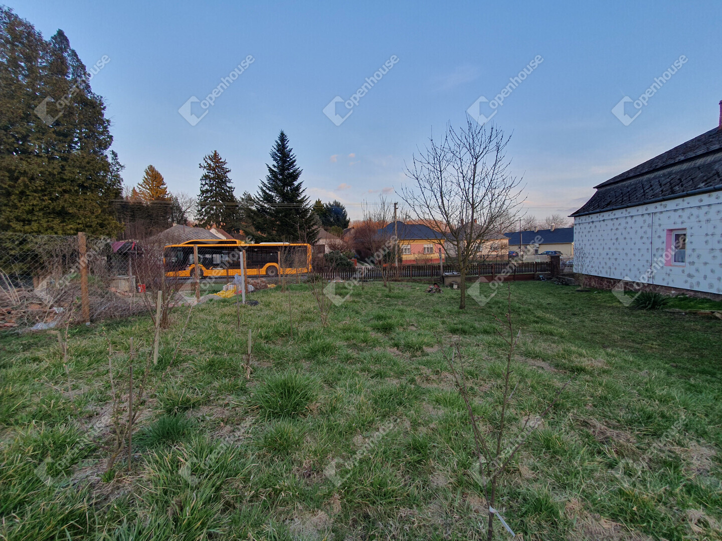 a telek hátsó részén fenyőfákból álló ligetes rész, amely természetközeli hangulatot biztosít