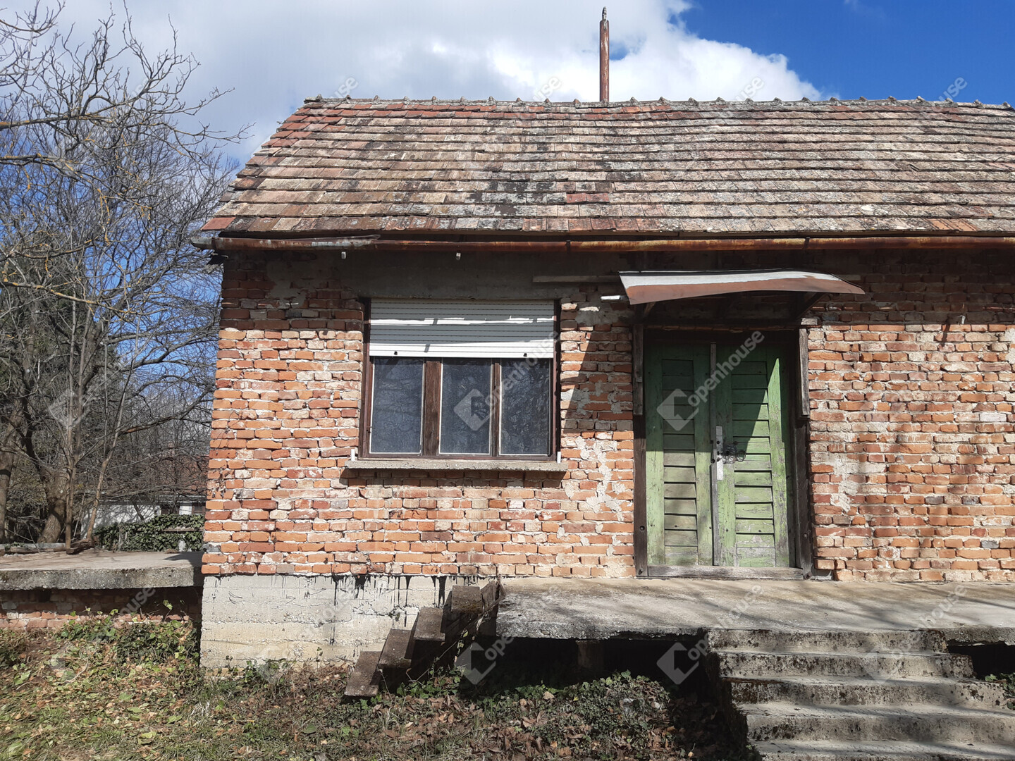 A házikó a telek közepén ,nem út mellett kellemes környezetben beton alapon téglafalakkal, cserép tetővel.