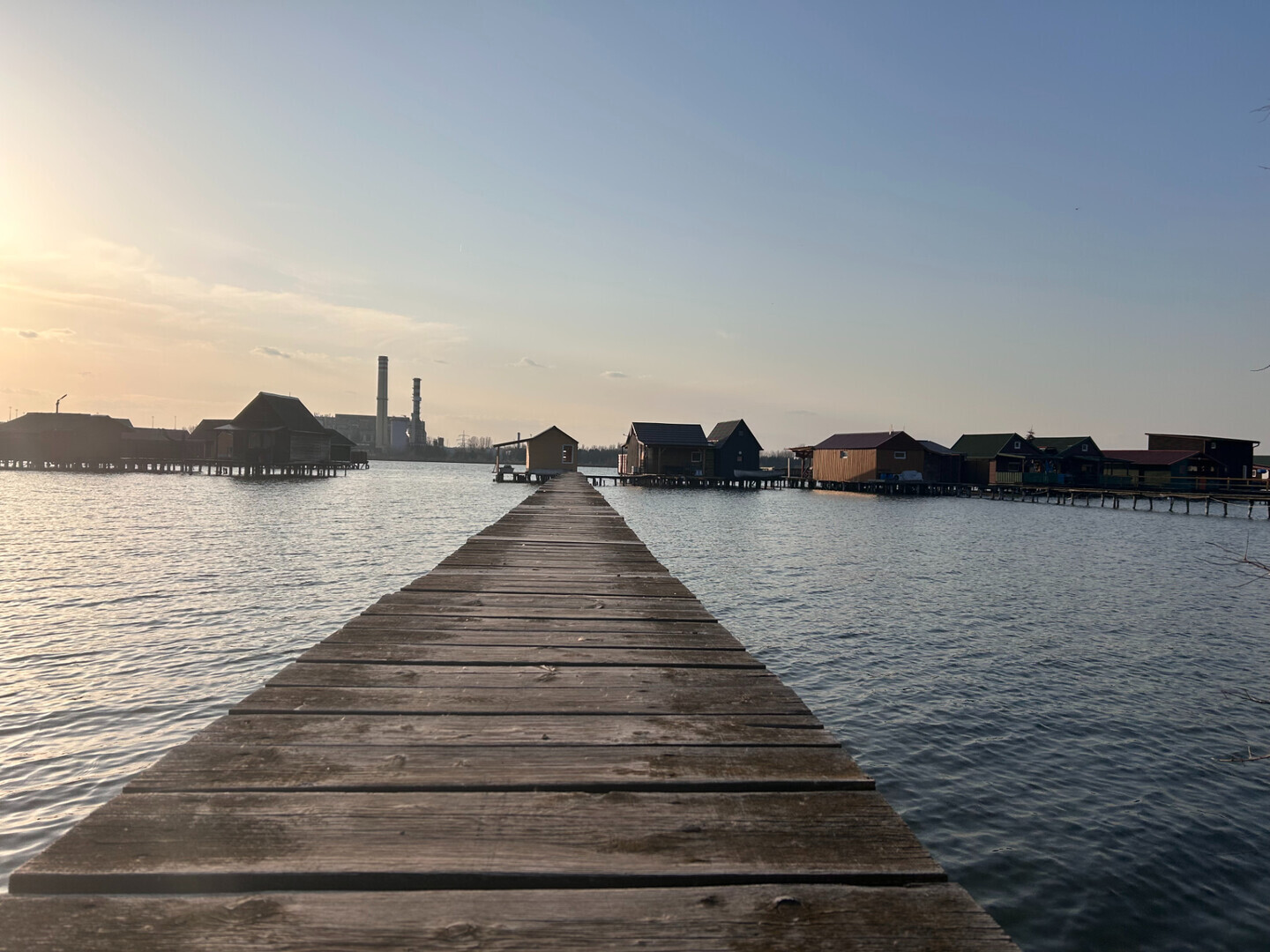 Horgászstég könnyűszerkezetes faházzal a Bokodi- tónál