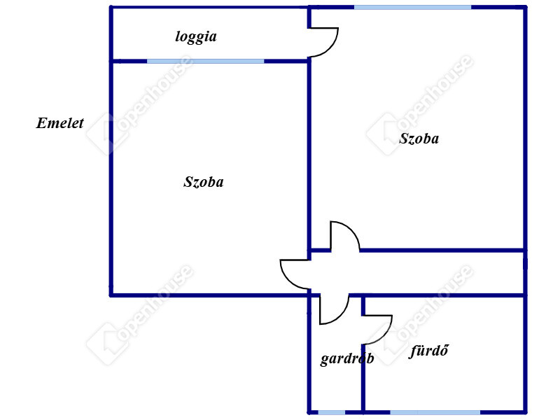 - Az lakás emeletén két különnyíló napfényes szoba van, az egyik szobához loggia tartozik, valamint közlekedő, fürdőszoba káddal, zuhanyzóval és a fürdőszobán belül különálló WC-vel.