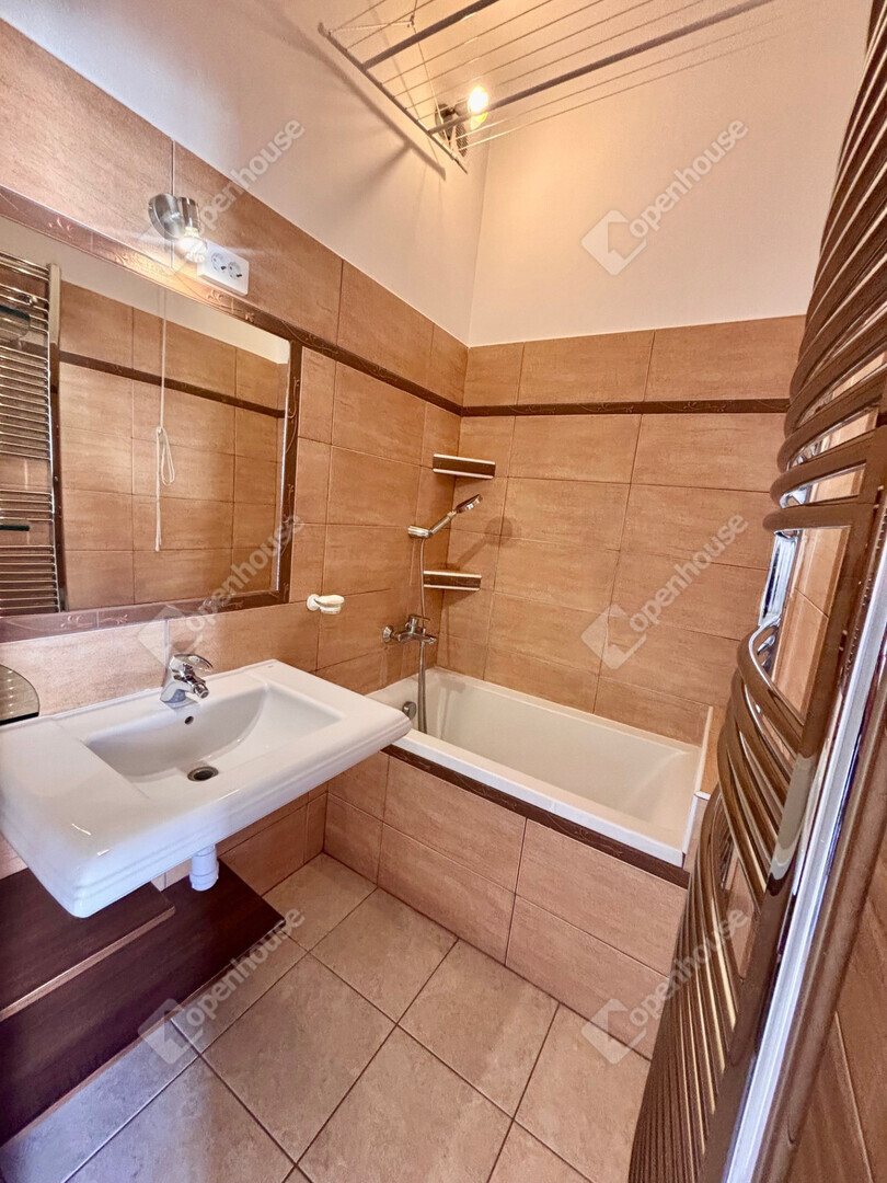 A fürdőszoba és a WC külön helyiségben található, ami a mindennapok során praktikus megoldás.