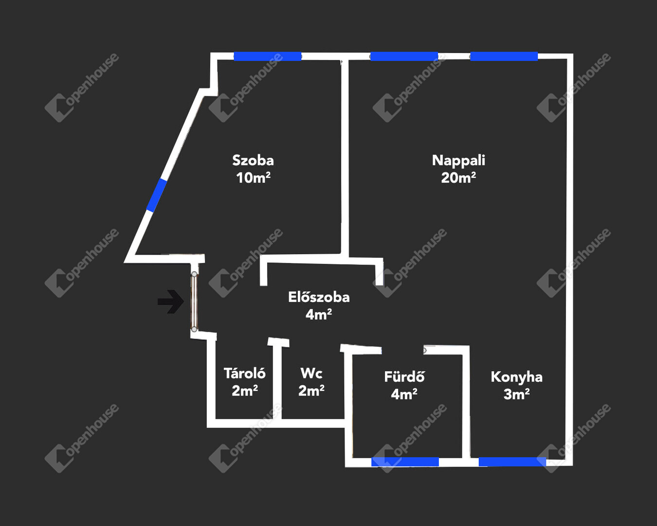 | Előszoba | 4.00 m2 | Faparketta |