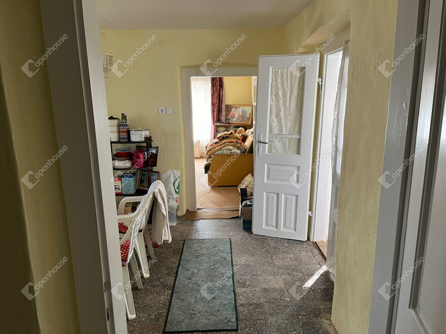 A kis ház kb. 51 m² lakóterületű, és 3 helyiségből áll, amely a zárt teraszon keresztül közelíthető meg.