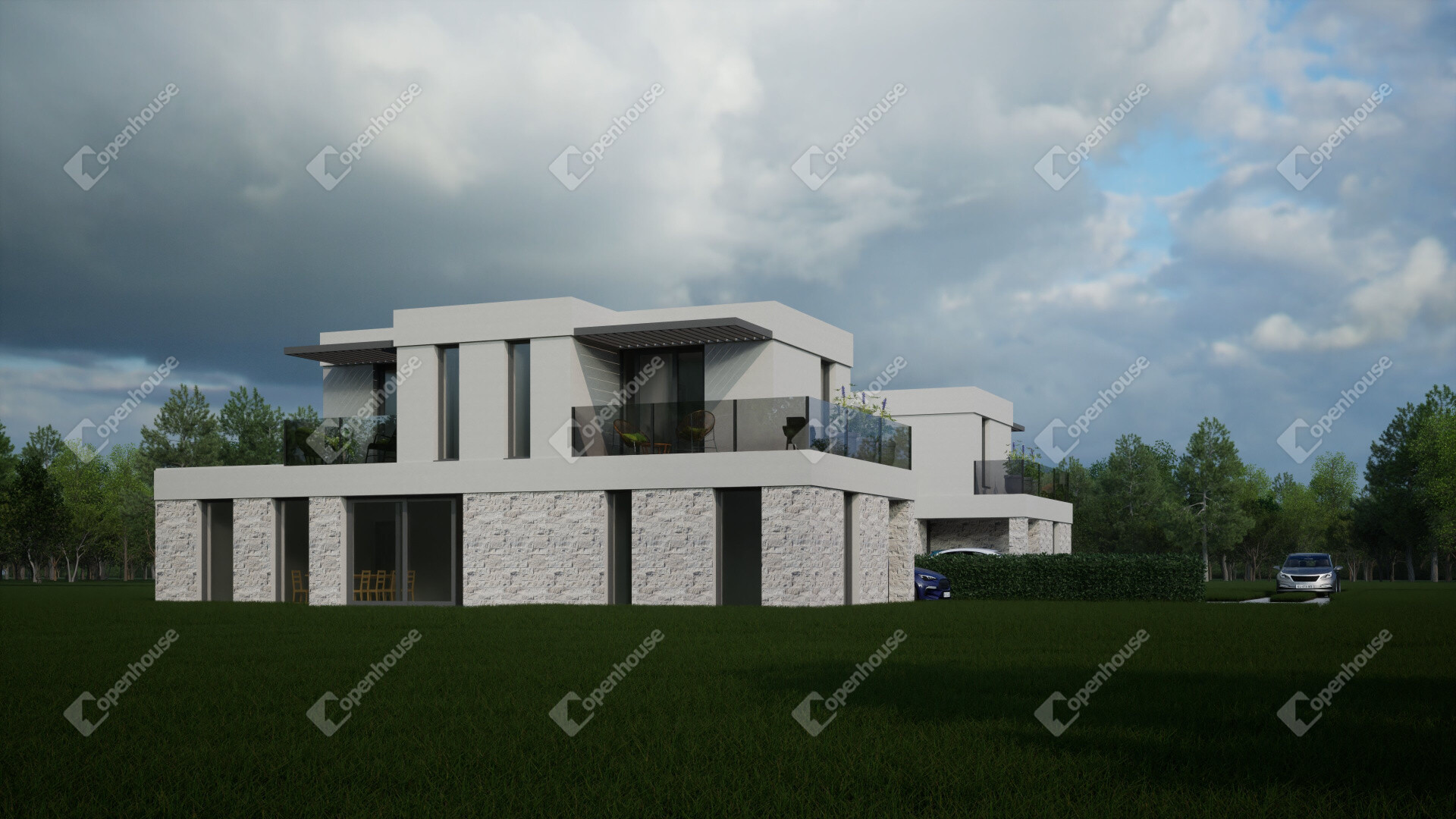 - 200 nm-s alapterület 500 nm-es telekrésszel, modern minimáldizájn megjelenéssel, Nappali+4 szobás, 3 fürdőszobás elrendezéssel
