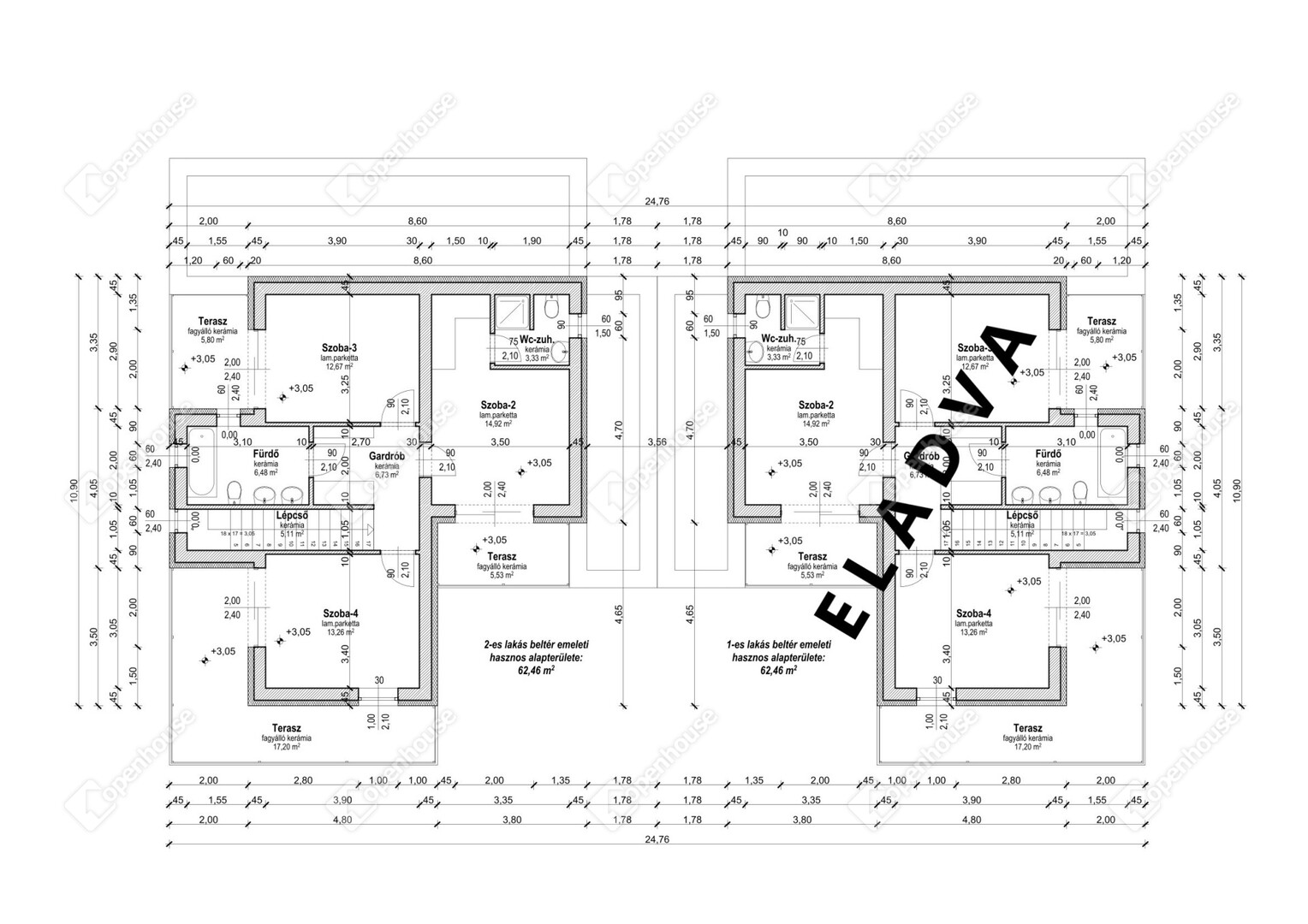 - A felső szinten 3 tetőterasz közel 30 nm-en