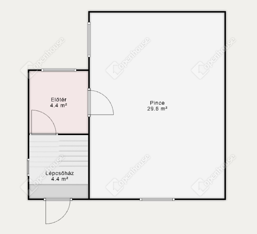 Pinceszint (34 m²): előtér, kazánház (vegyes tüzelésű kazán)