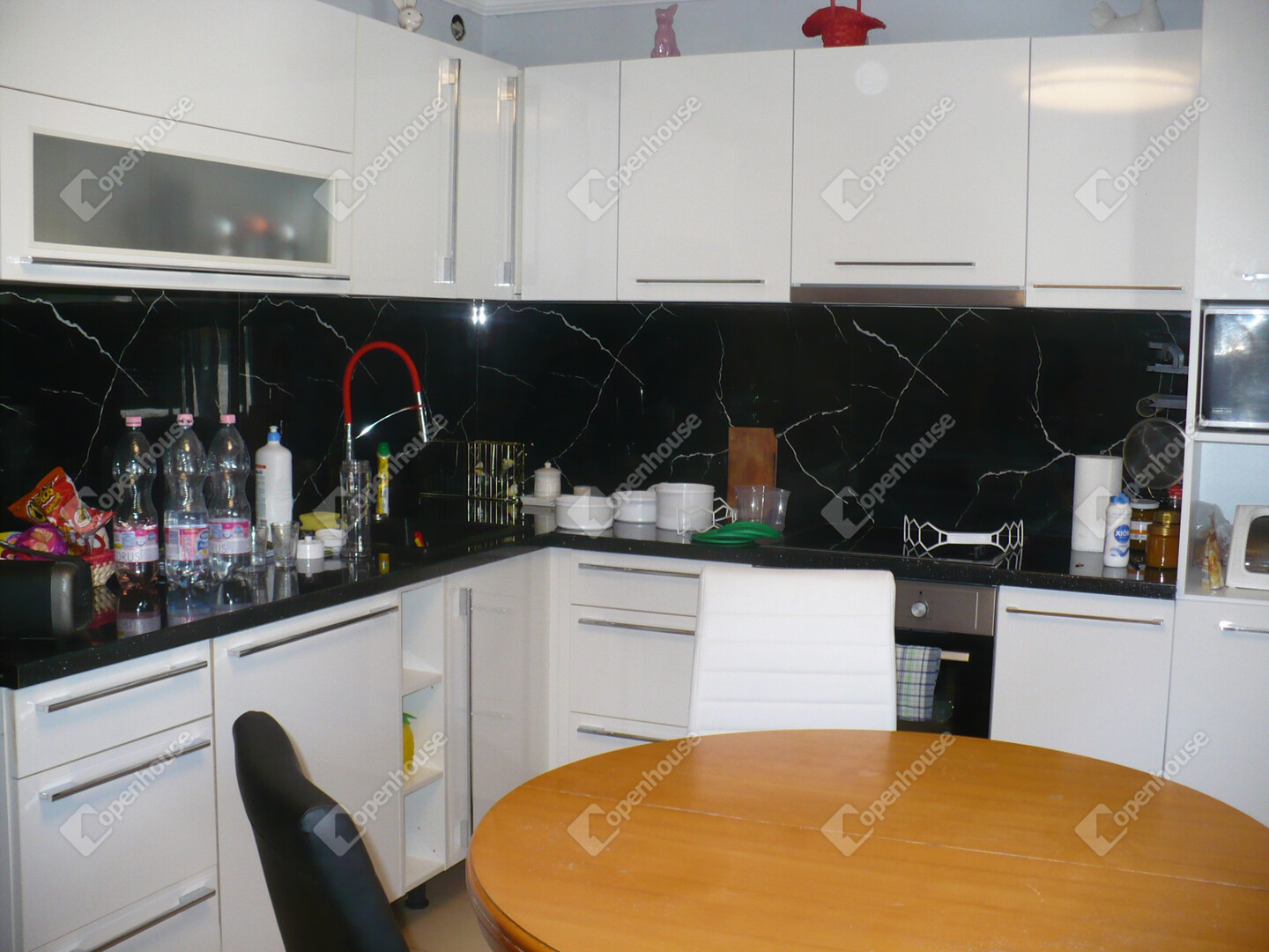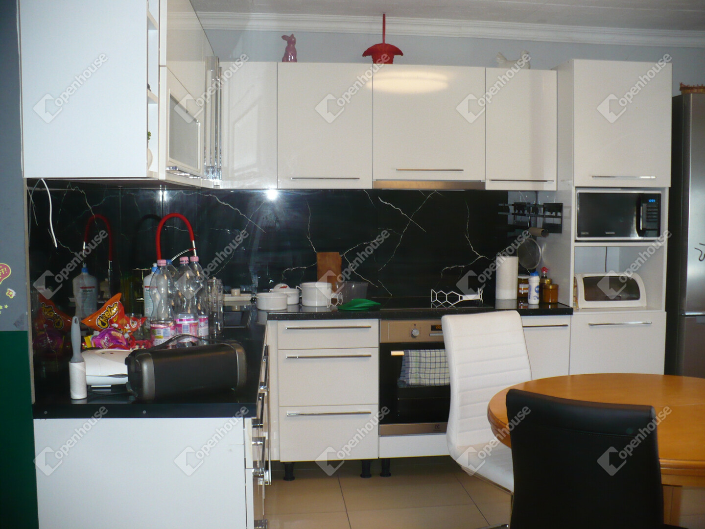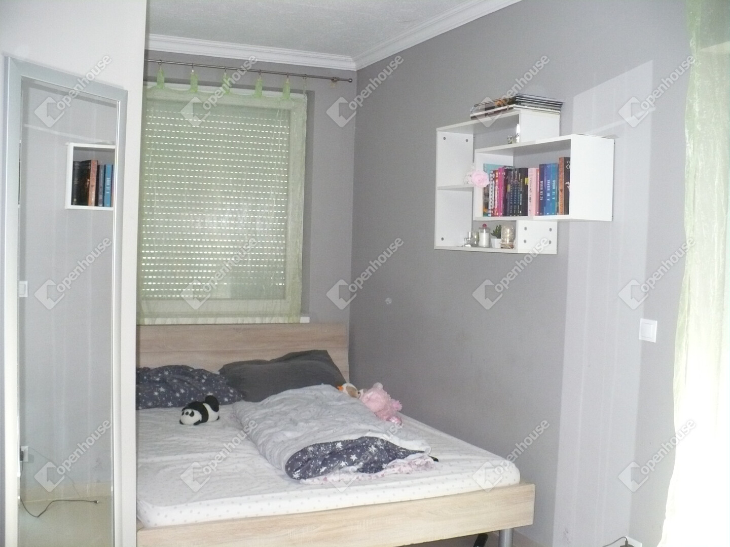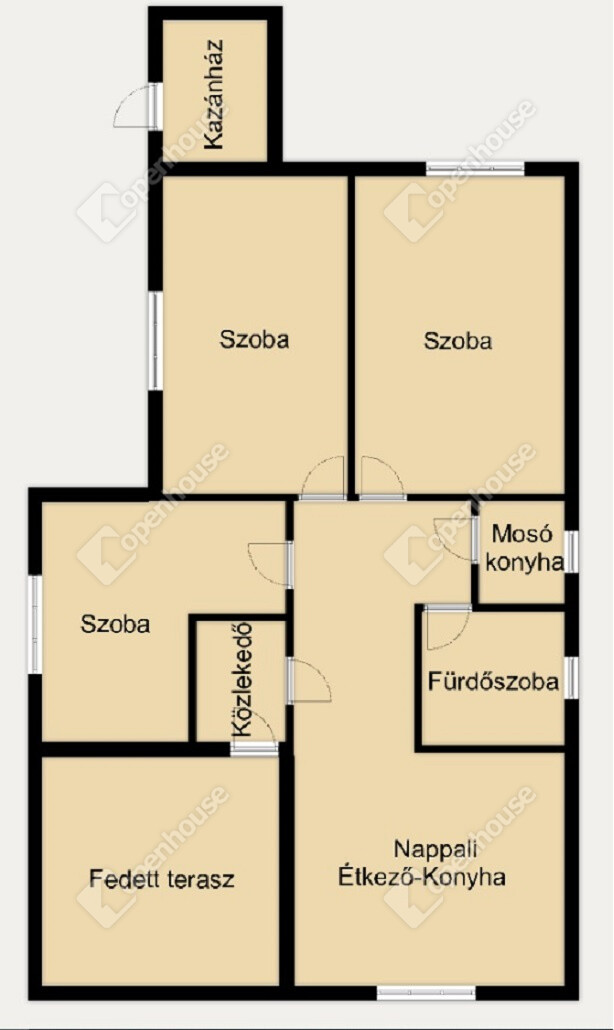 A belső elrendezése kiváló: az amerikai konyhás nappali mellett 3 külön nyíló hálószoba,