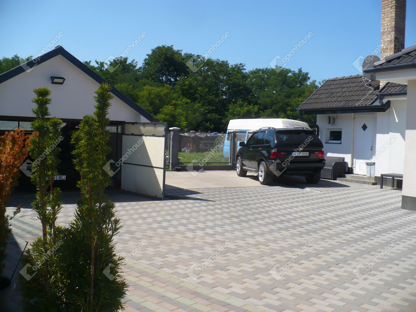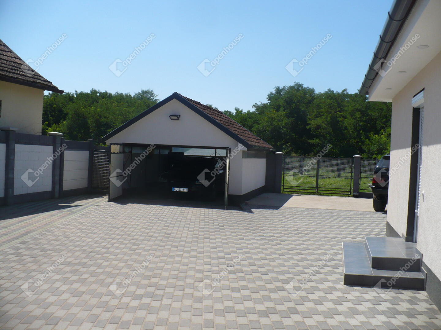 A lakóépület és a garázs környezetében több mint 200 nm-es térkövezett