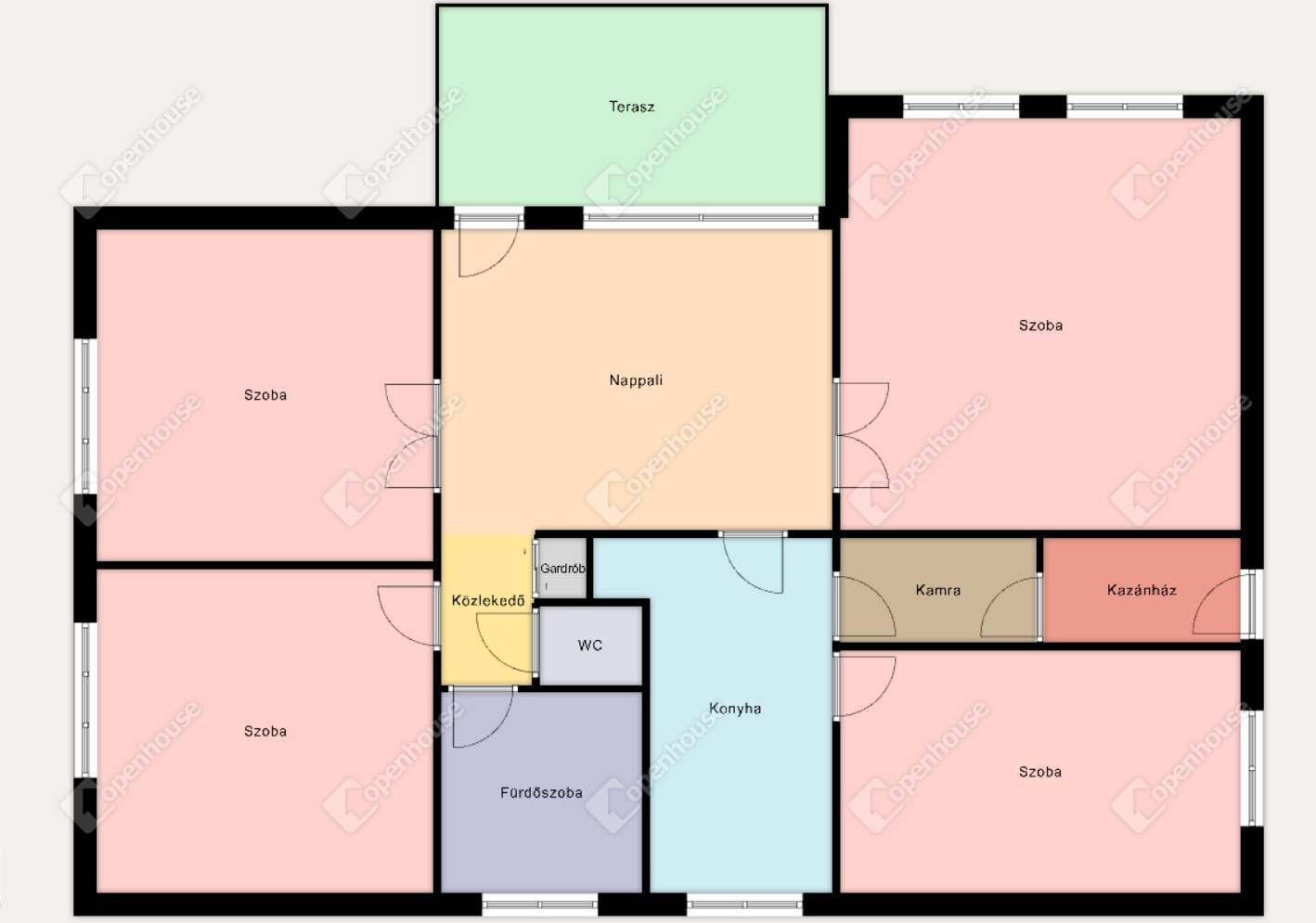 - 4 külön nyíló szoba