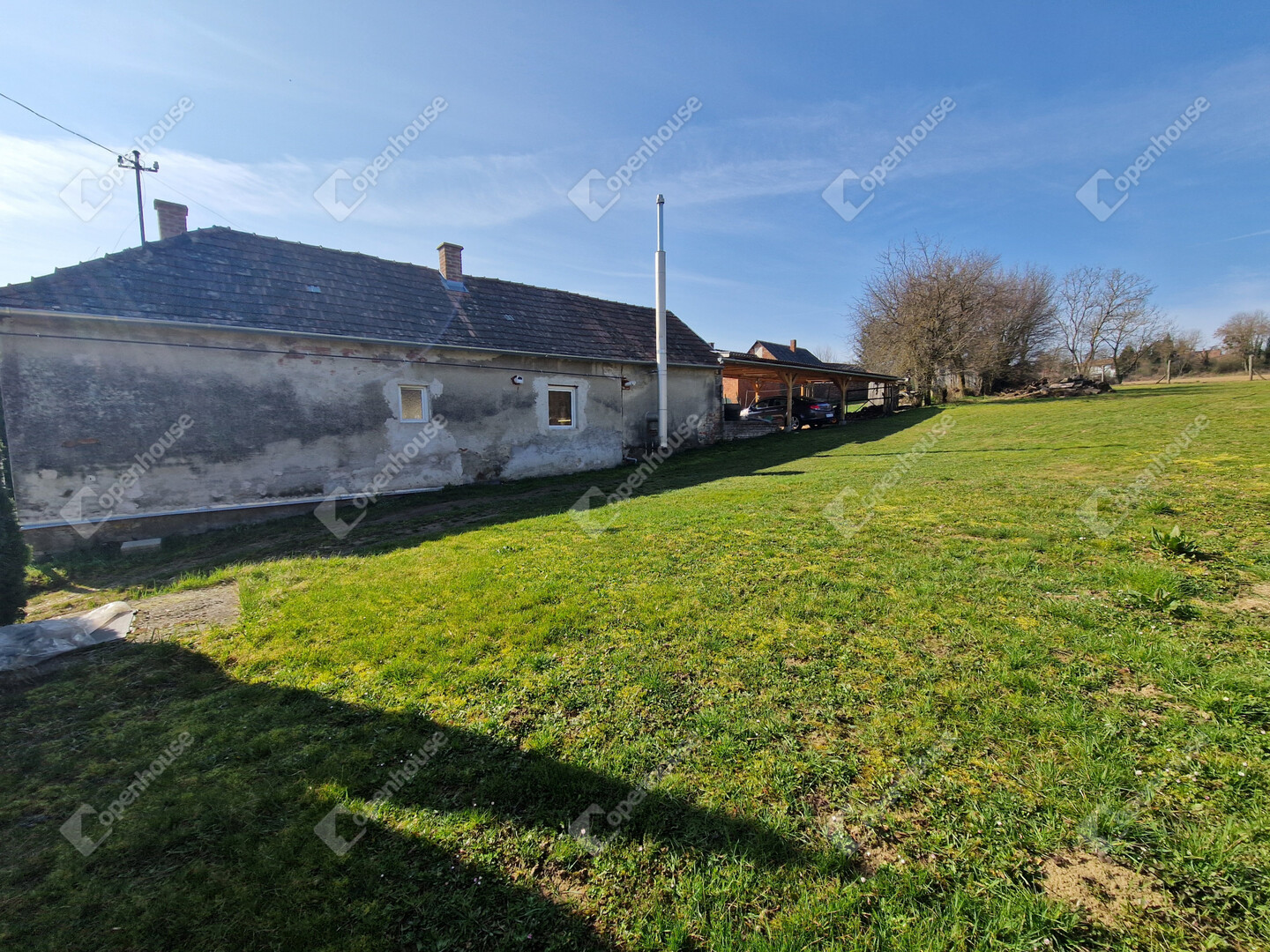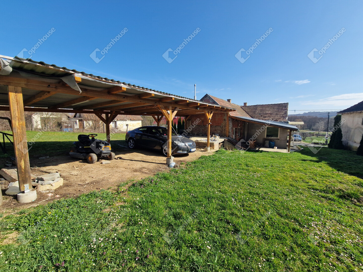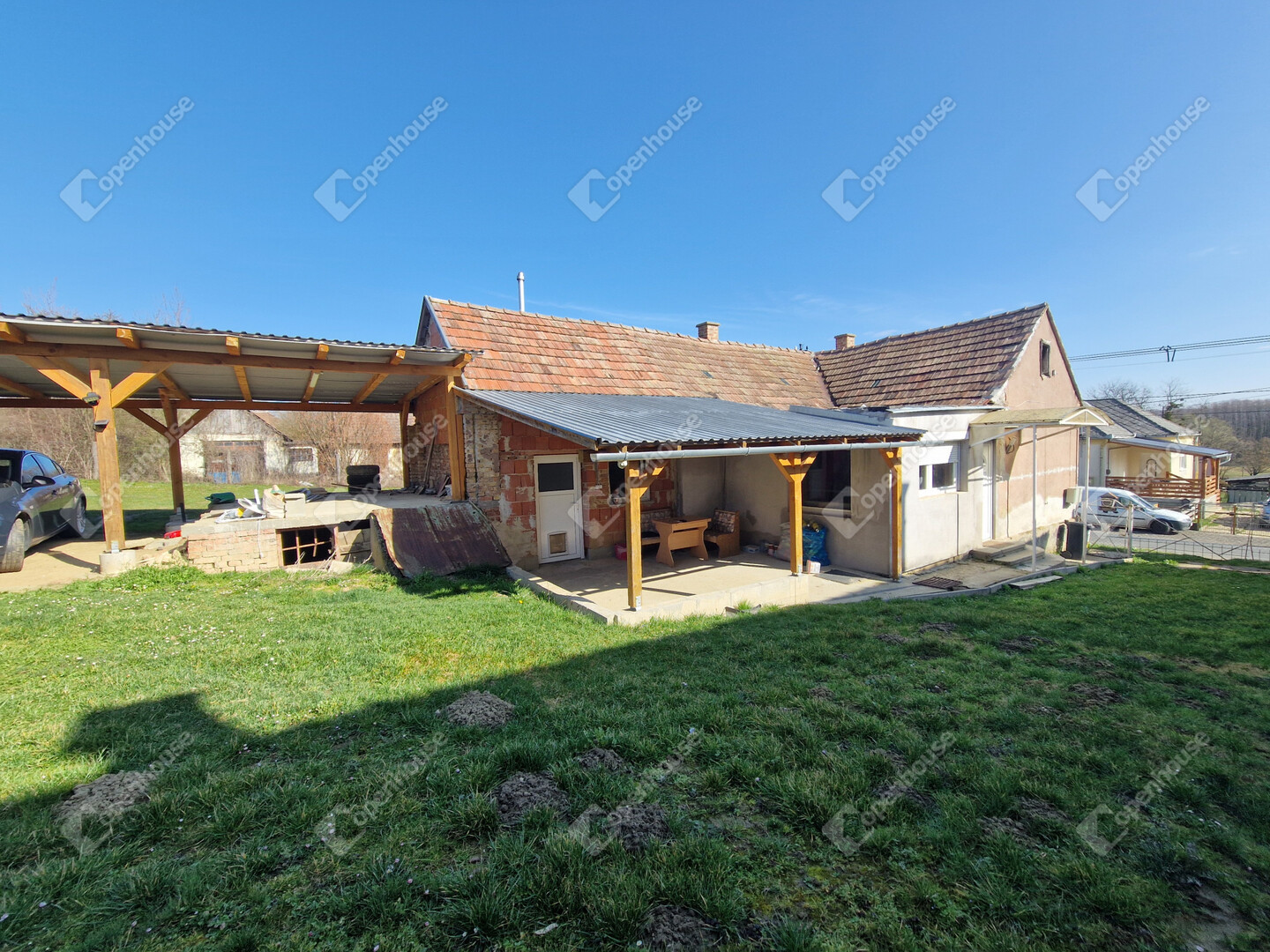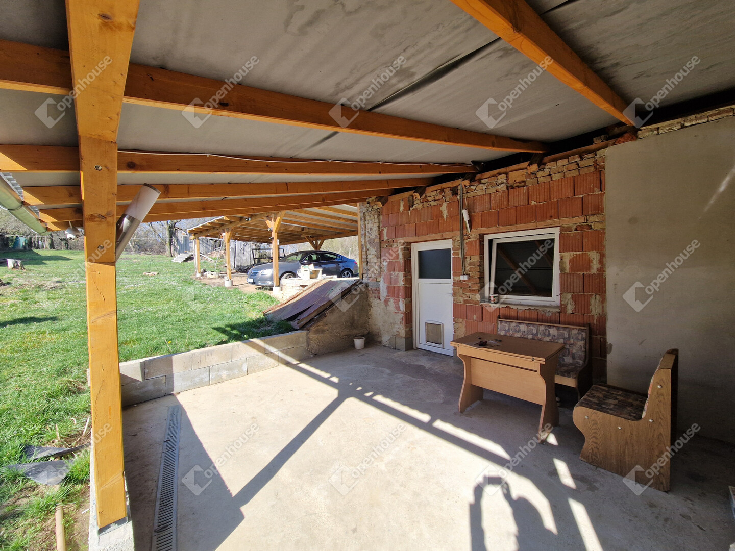 - A ház folytatásában fedett autóbeálló, mely 2 autó kényelmes parkolását biztosítja és egy kis földpince is megtalálható.