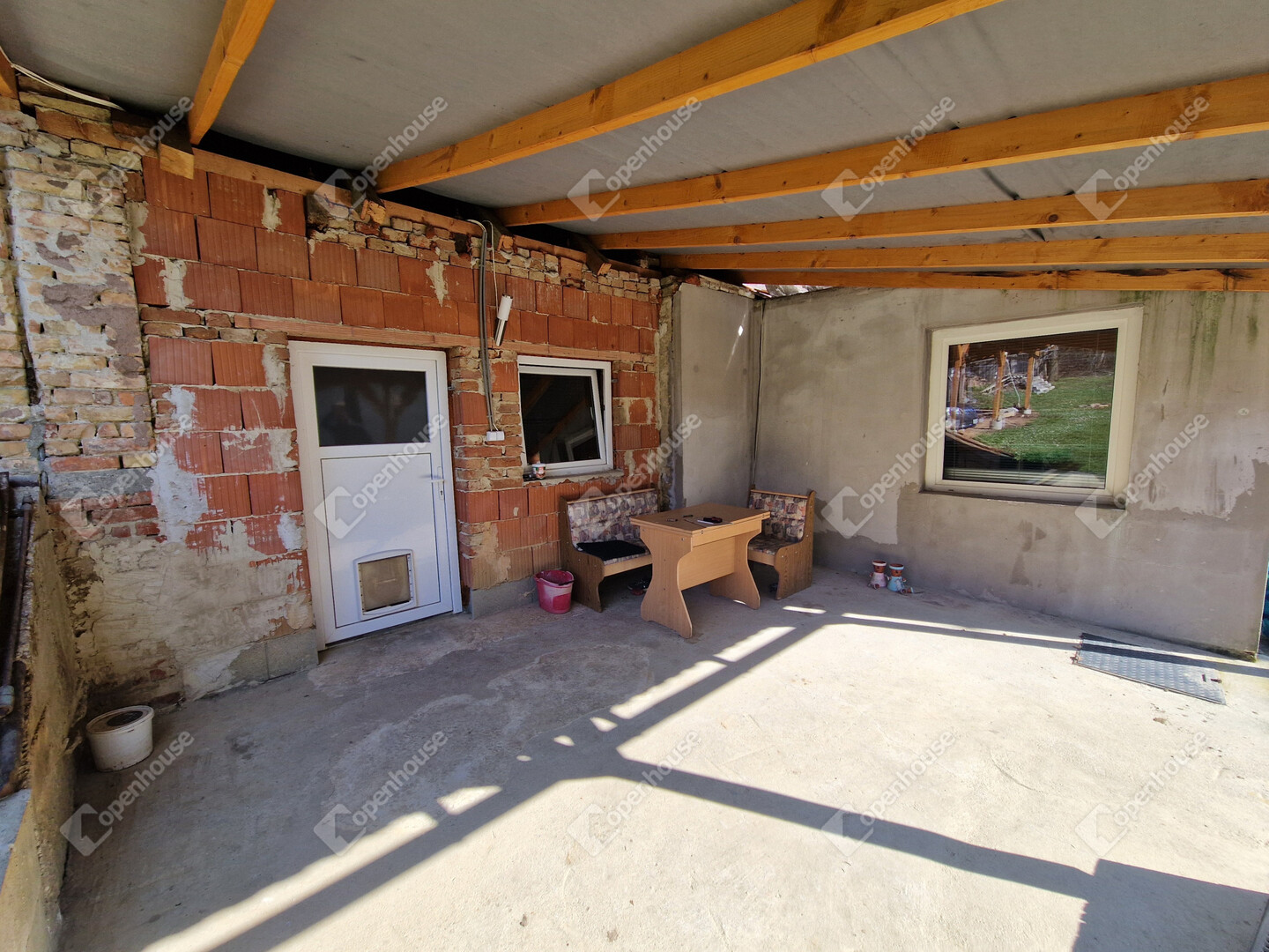 - Beton alap, cserép fedésű tető, száraz falak.