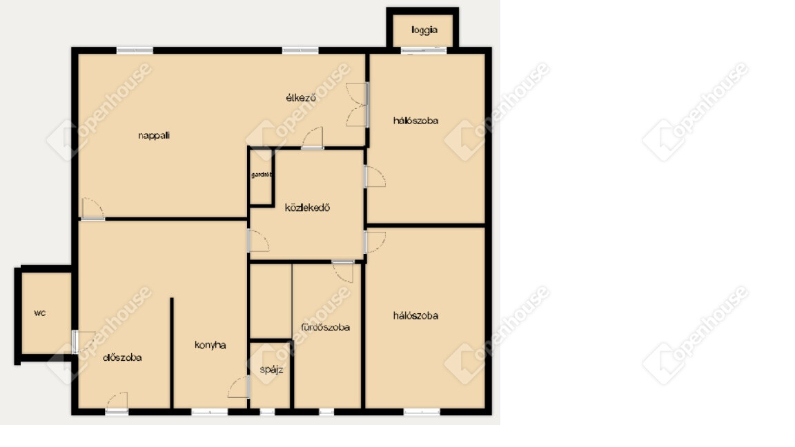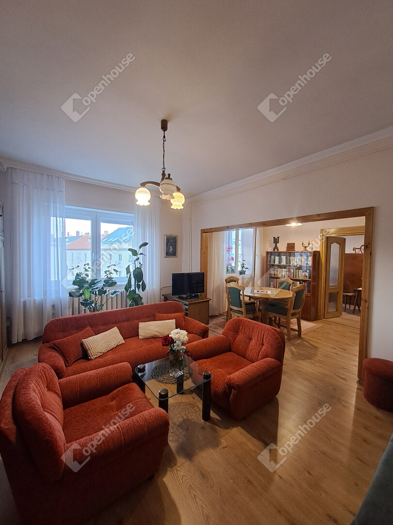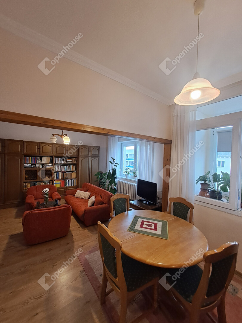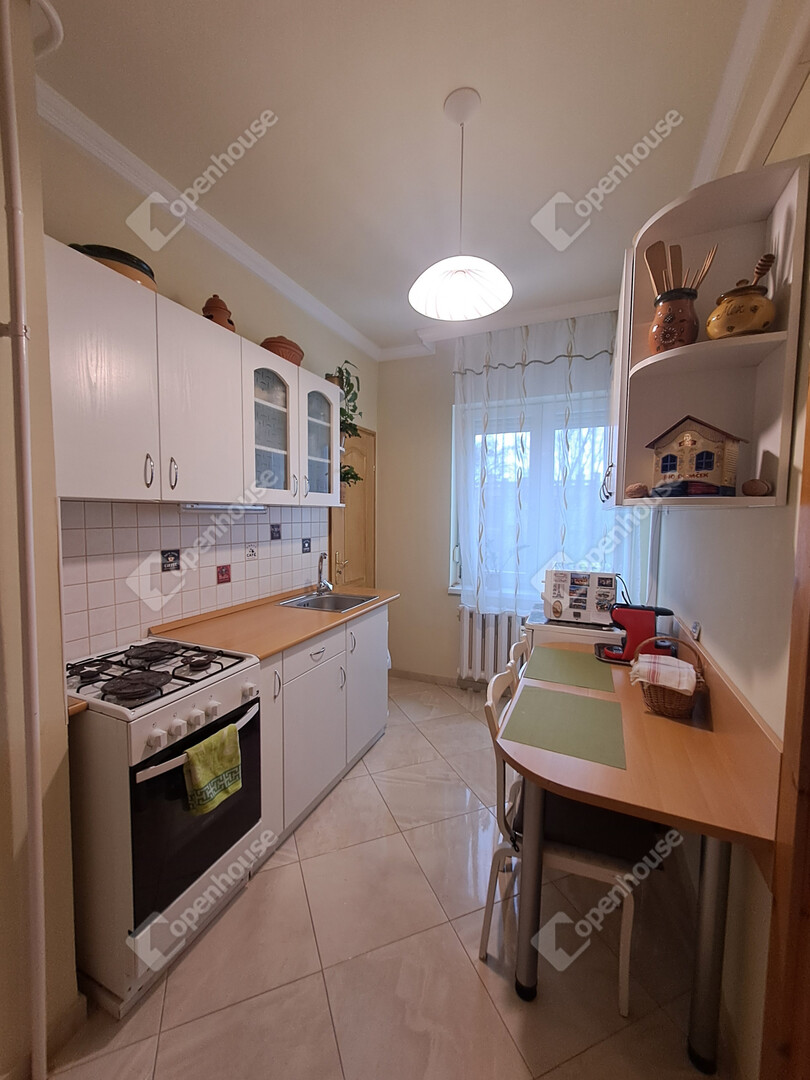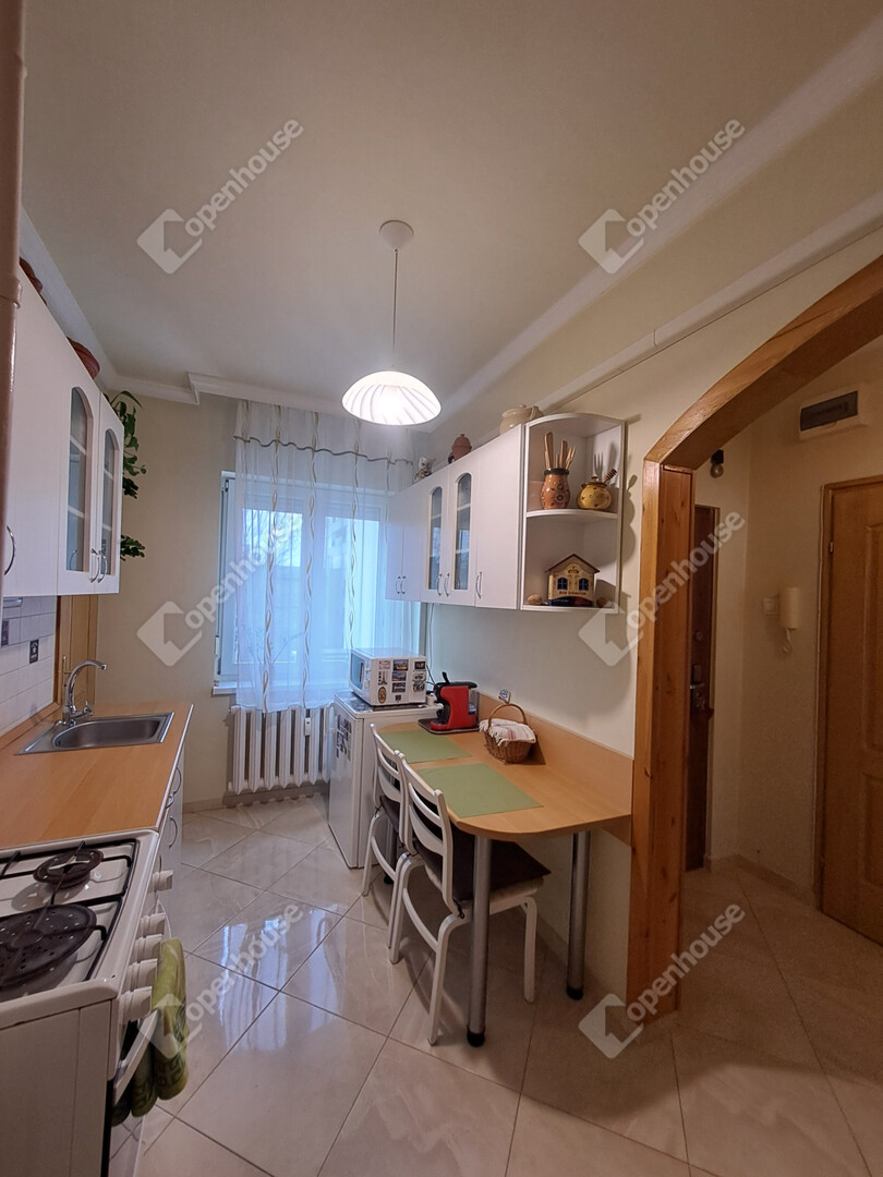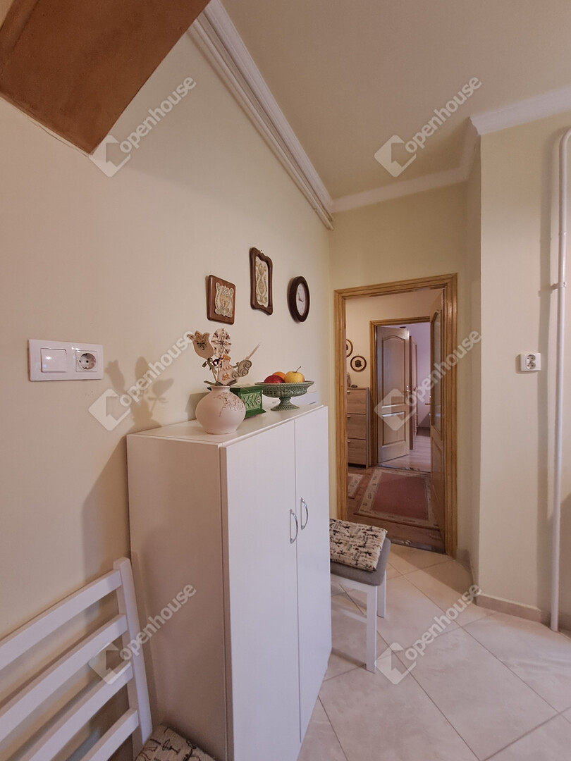 - Helyiségei: nagy nappali + 2 szoba, konyha, kamra, fürdőszoba, külön WC, gardrób, erkély,