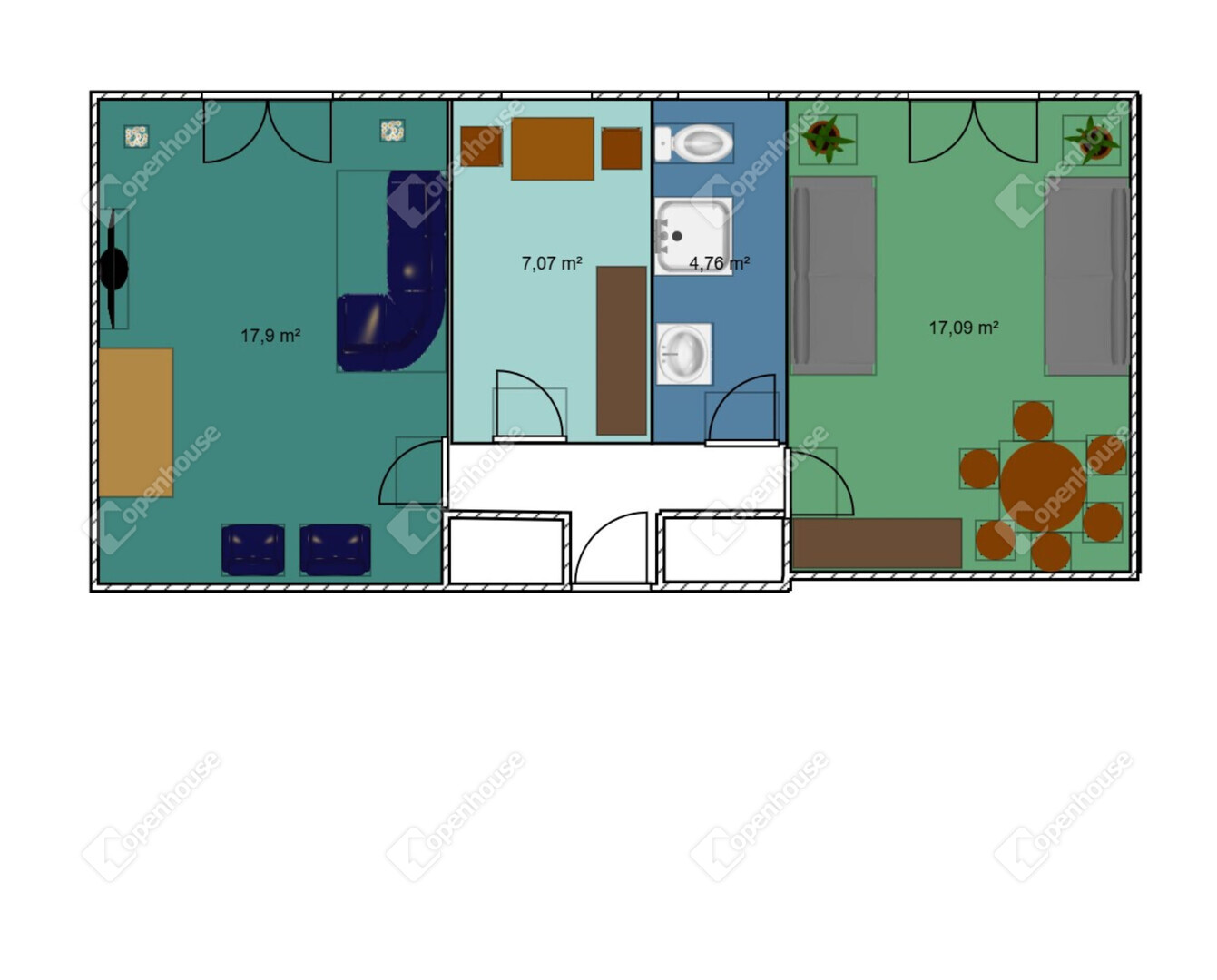 | Szoba | 17.00 m2 | Laminált padló |