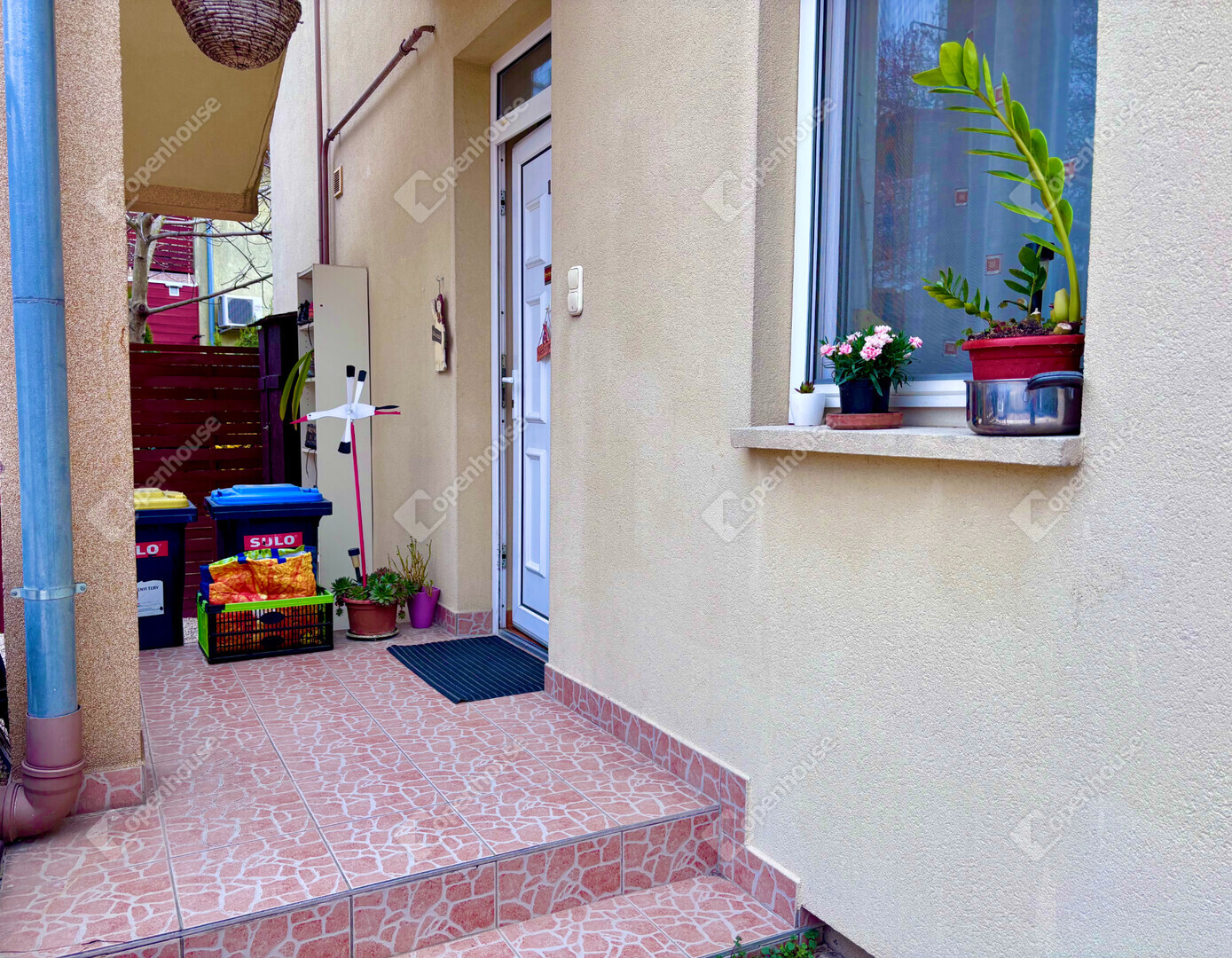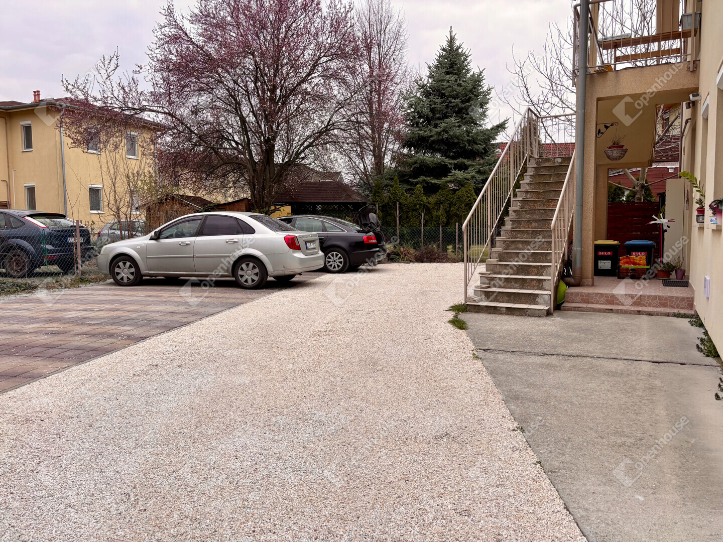 Parkolás: 1 db telken belüli, térkövezett gépkocsibeálló motoros kapuval (a vételár része!)