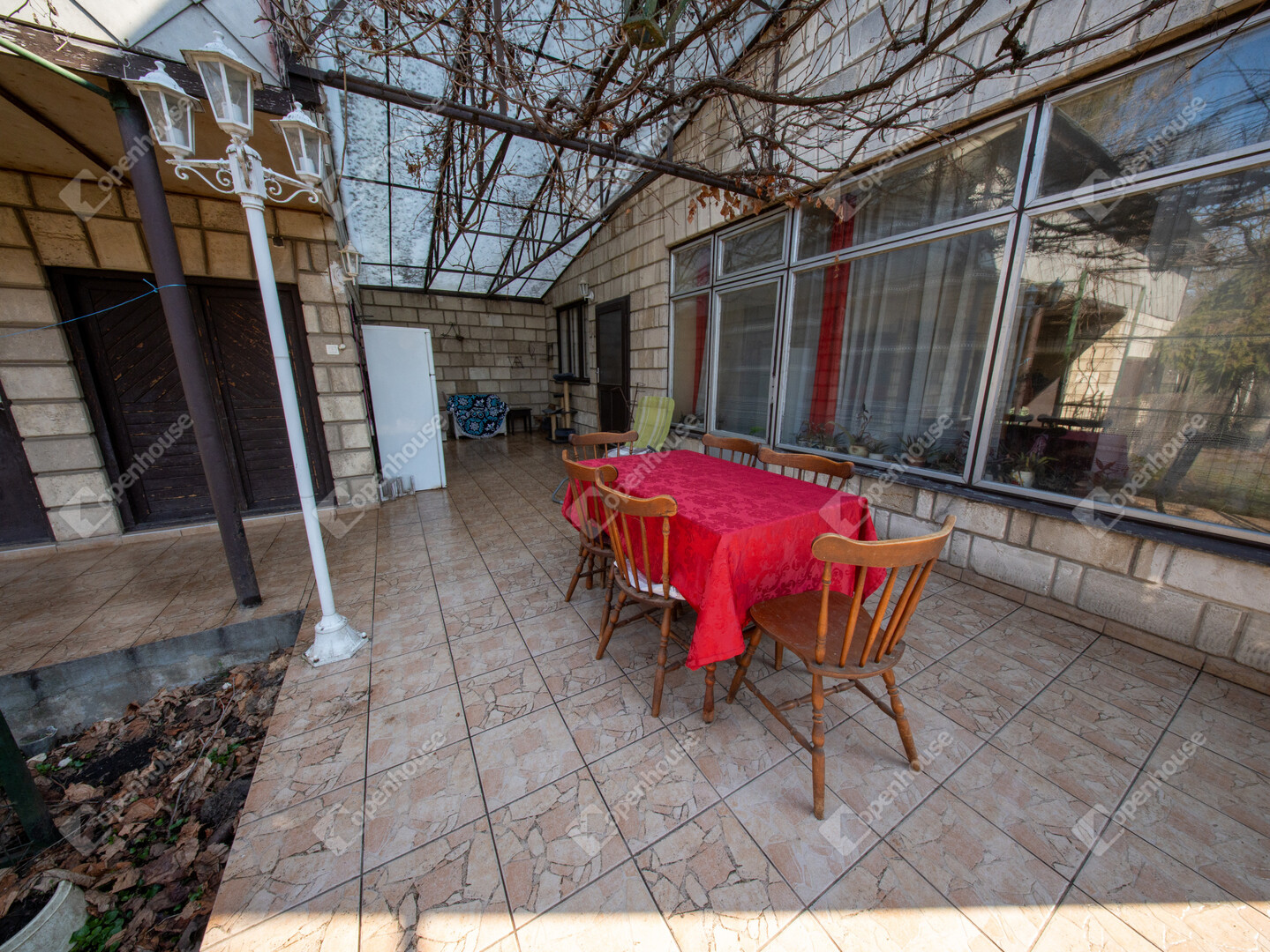 A 18 m²-es terasz szőlőlugassal fedett, ahonnan a kertre nyílik kilátás – ideális reggeli kávéhoz vagy nyári esti beszélgetésekhez. A kertben bográcsozóhely is kialakításra került, így a baráti és családi összejöveteleknek is tökéletes helyszín. A házhoz pince, kamra, tároló és garázs is tartozik.