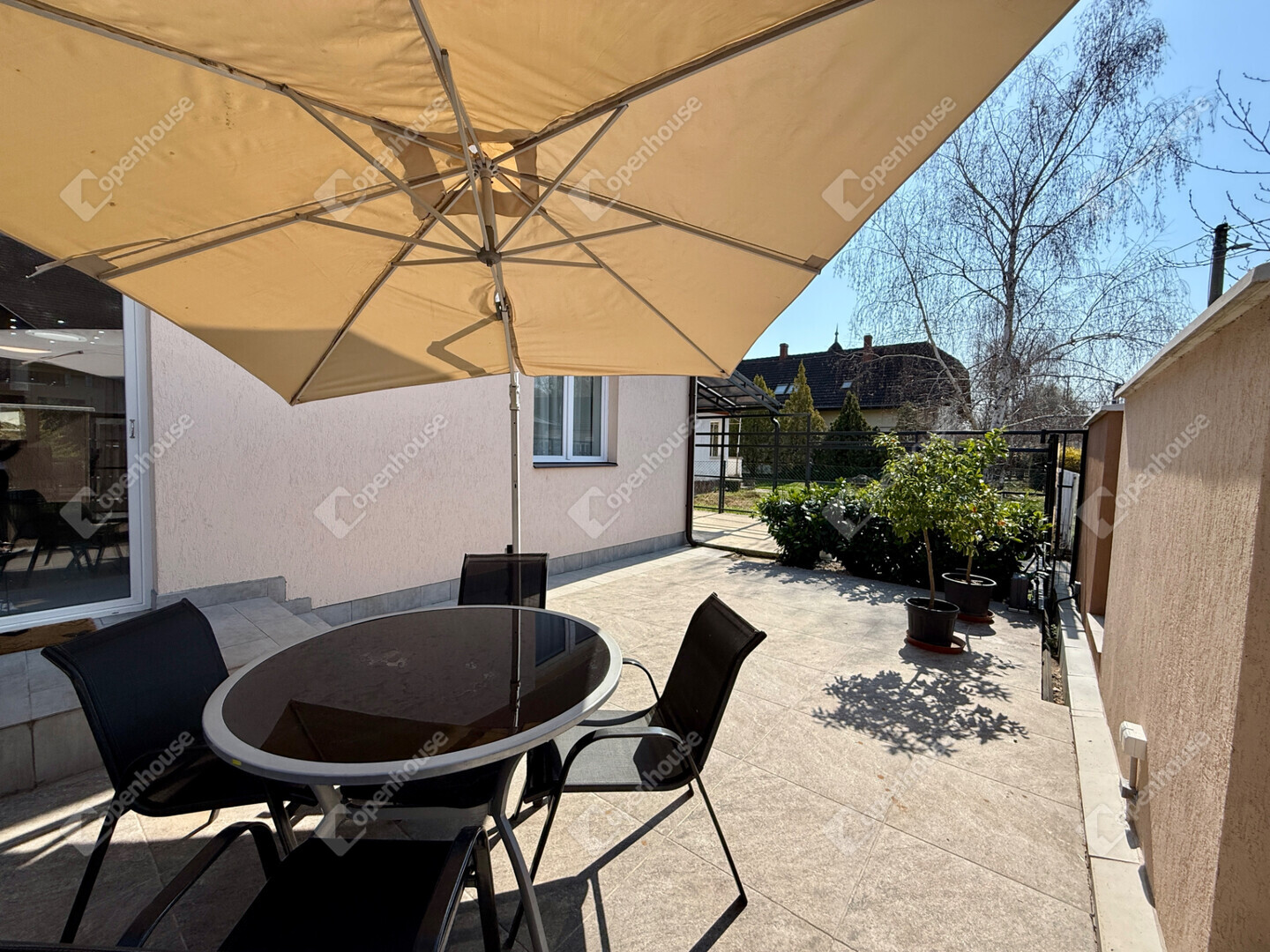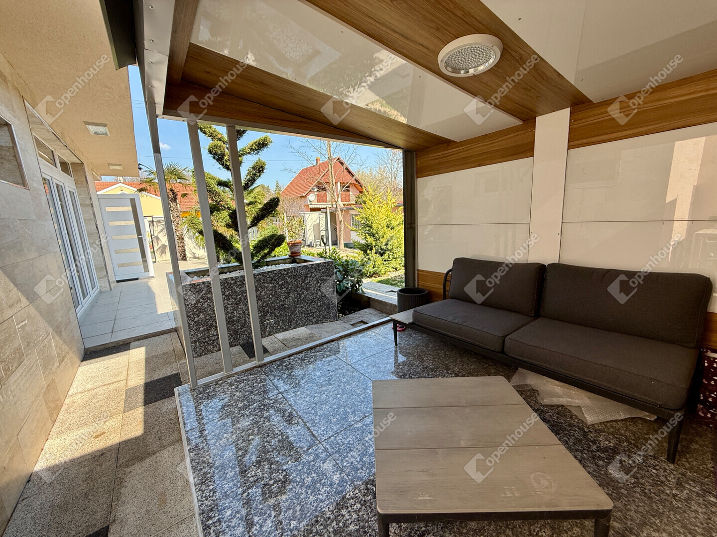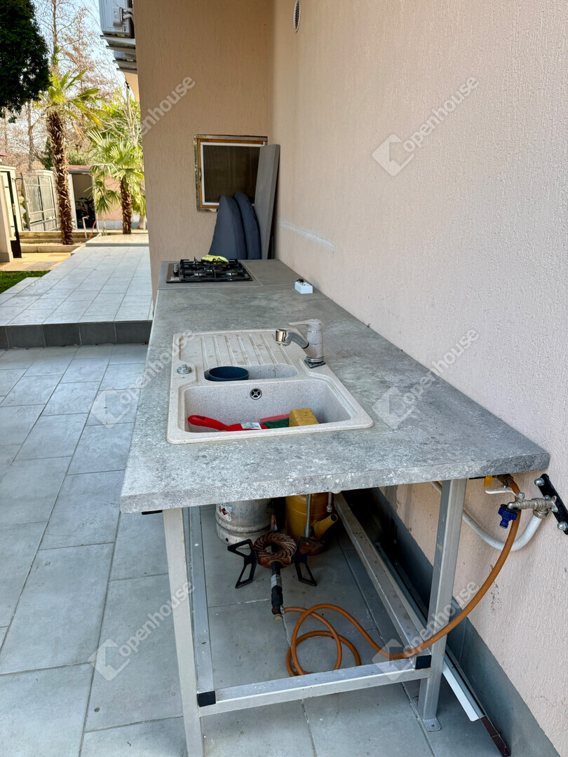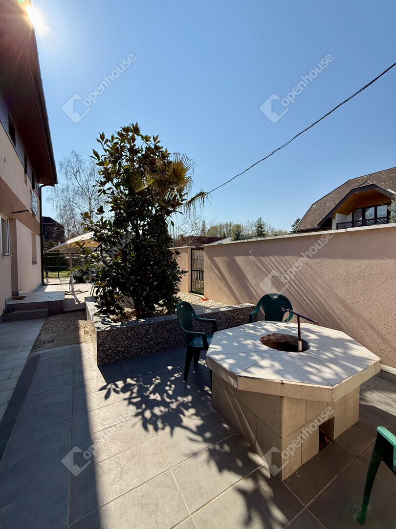 A gondosan parkosított, teljes egészében térkövezett udvar tökéletes helyszíne a kikapcsolódásnak és vendéglátásnak. A szabadtéri élményeket egy jól felszerelt kültéri konyha teszi teljessé, amely ideális baráti és családi összejövetelekhez. A hosszabbra nyúló estékhez különálló, teljes komforttal rendelkező vendégház is rendelkezésre áll.