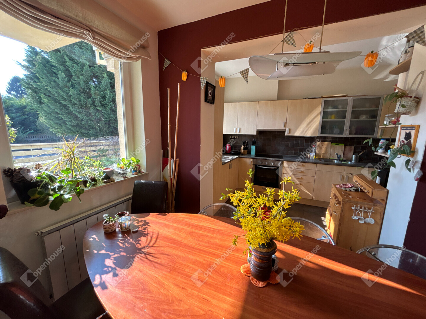Az ingatlan szíve a világos, barátságos élettér, amely harmonikusan kapcsolódik a praktikus helyiségekhez. A gázkazános fűtési rendszer gondoskodik a gazdaságos és megbízható hőellátásról az év minden szakaszában.