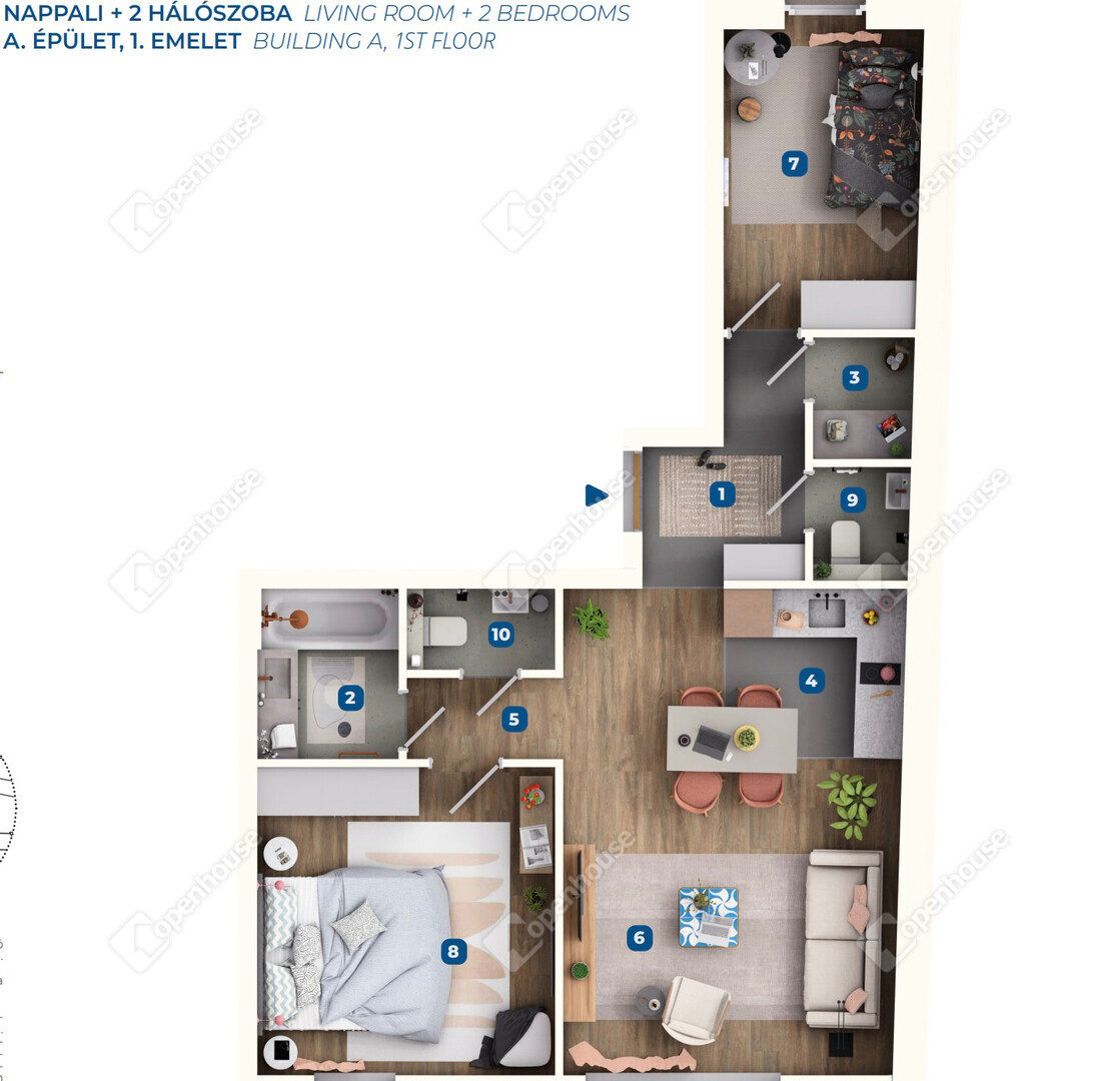 - Családoknak (praktikus elosztás, több hálószoba)