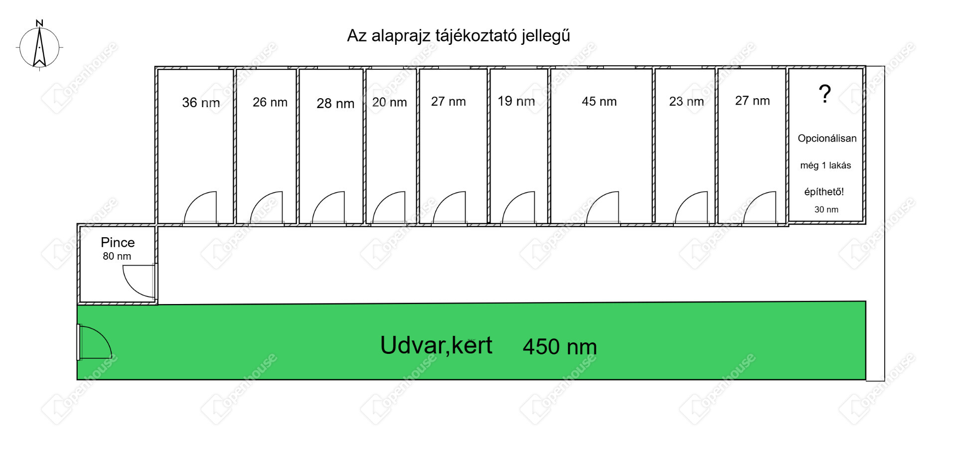Az ingatlan egy 450 nm-es telken helyezkedik el, a teljes hasznos alapterület 251 nm, amelyhez pincehelyiség is tartozik. A lakások mérete 19–45 nm között változik, így tökéletesen alkalmasak bérbeadásra, rövidtávú hasznosításra, munkásszálló kialakítására, vagy akár külön értékesítésre is.