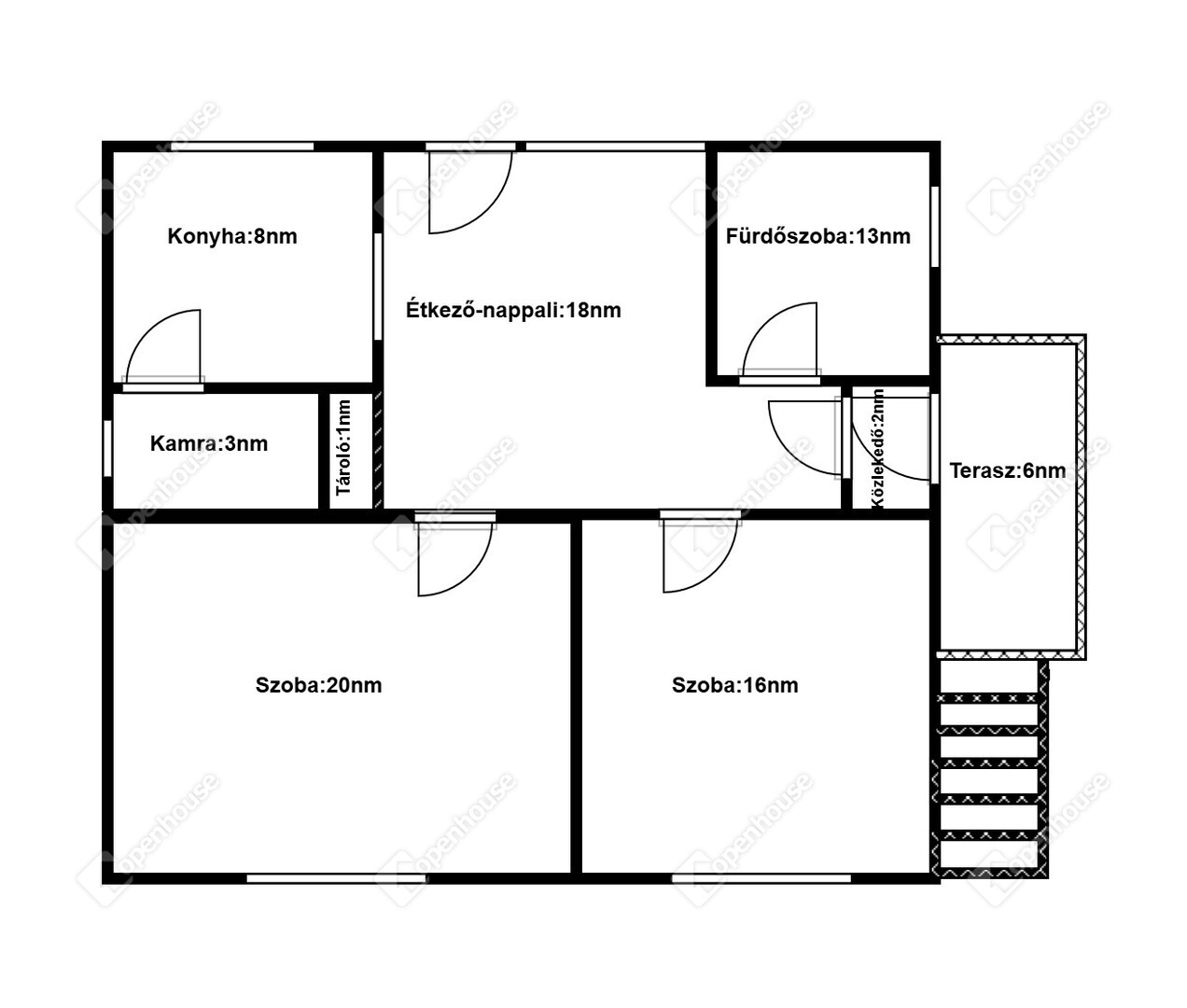 | Szoba | 20.00 m2 | Padlószőnyeg |