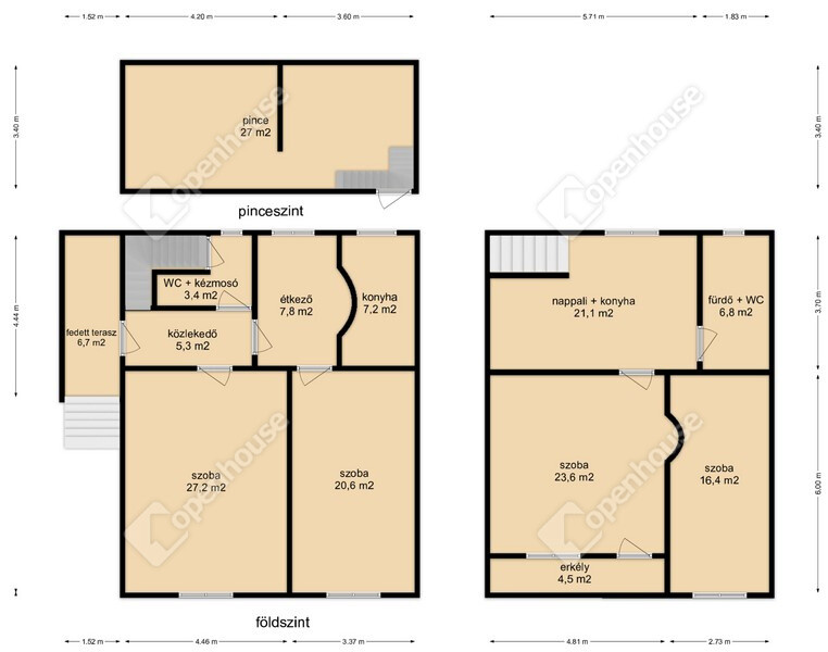 Az ingatlan alatt található pince további értéket képvisel – ideális tárolásra, műhelynek vagy akár hobbitér kialakítására.