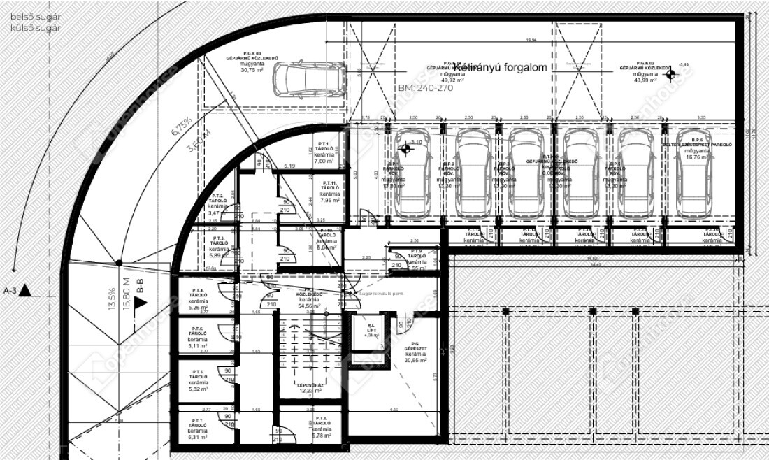 Az ingatlan 3 szinten kerülne megépítésre, mélygarázzsal és felszíni parkolási lehetőséggel.