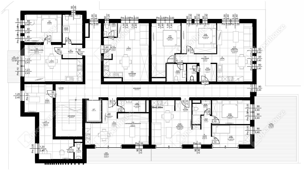 A 3. emeleten 75,45 m2 lakás (plusz terasz), illetve 18,90 m2 közösségi tér kerül kialakításra, ami összesen: 94,35 m2.