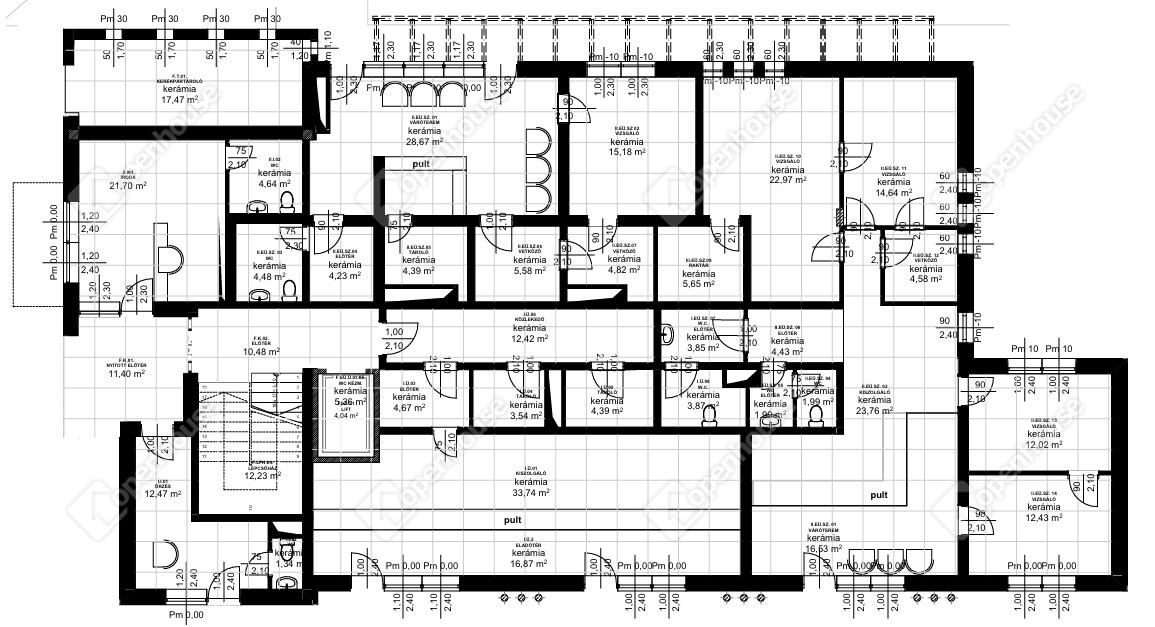 A földszinten 271,7 rendelő, illetve üzlet, ezenkívül 91,09 m2 közösségi tér kerül kialakításra, ami összesen