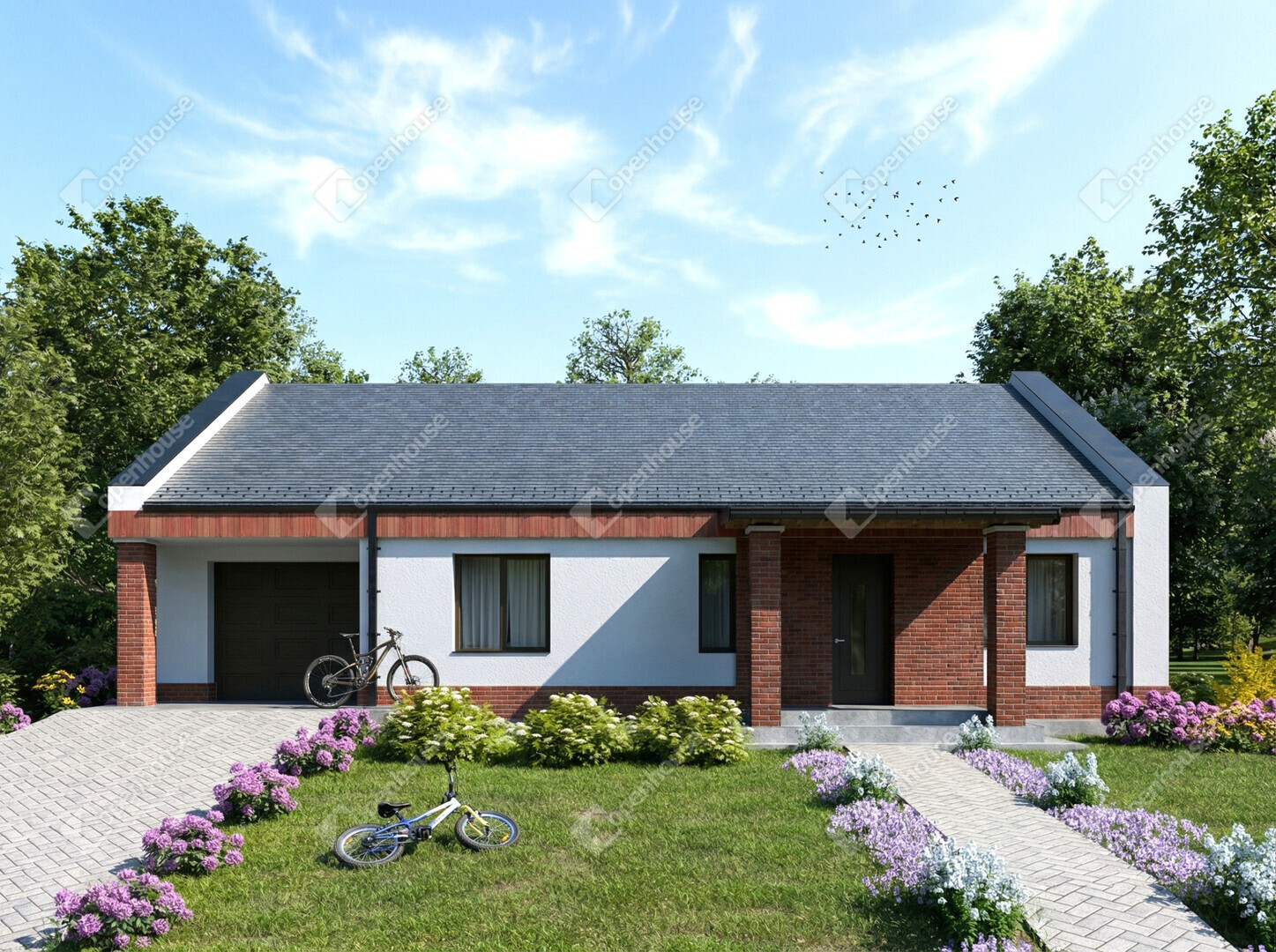 A garázs közvetlen kapcsolatban áll a házzal, így a mindennapi használat kényelmes és időjárástól független.