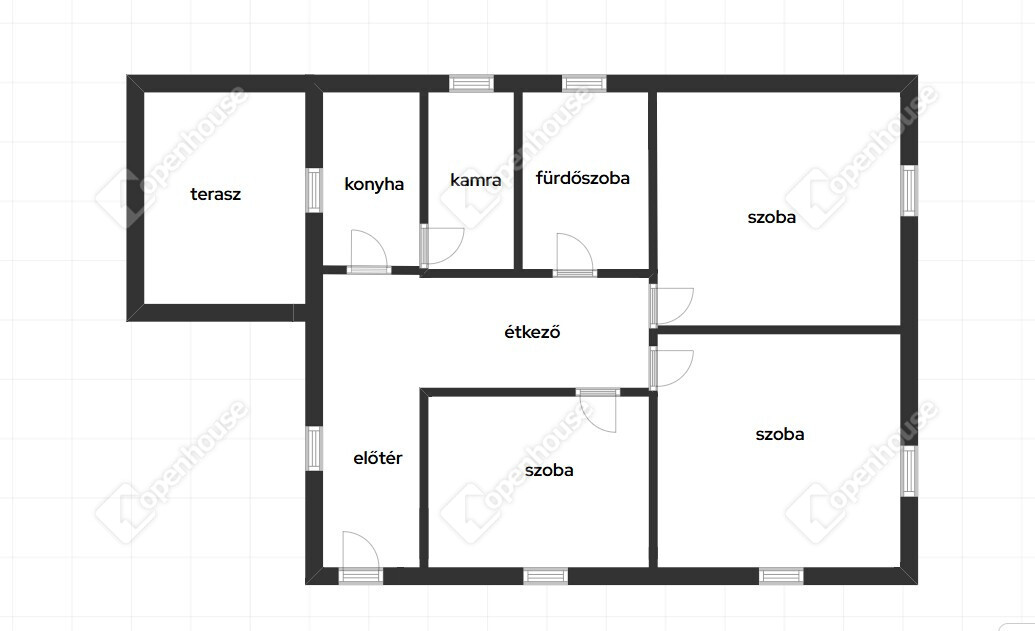 Elosztás: 3 szoba, étkező, spejz, 1 konyha, 1 fürdőszoba