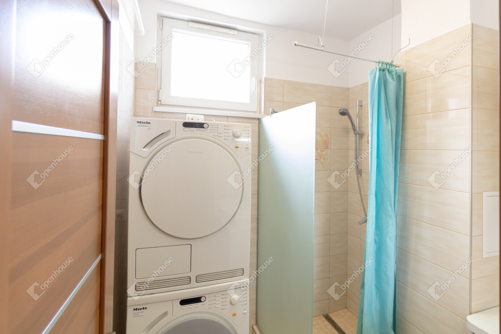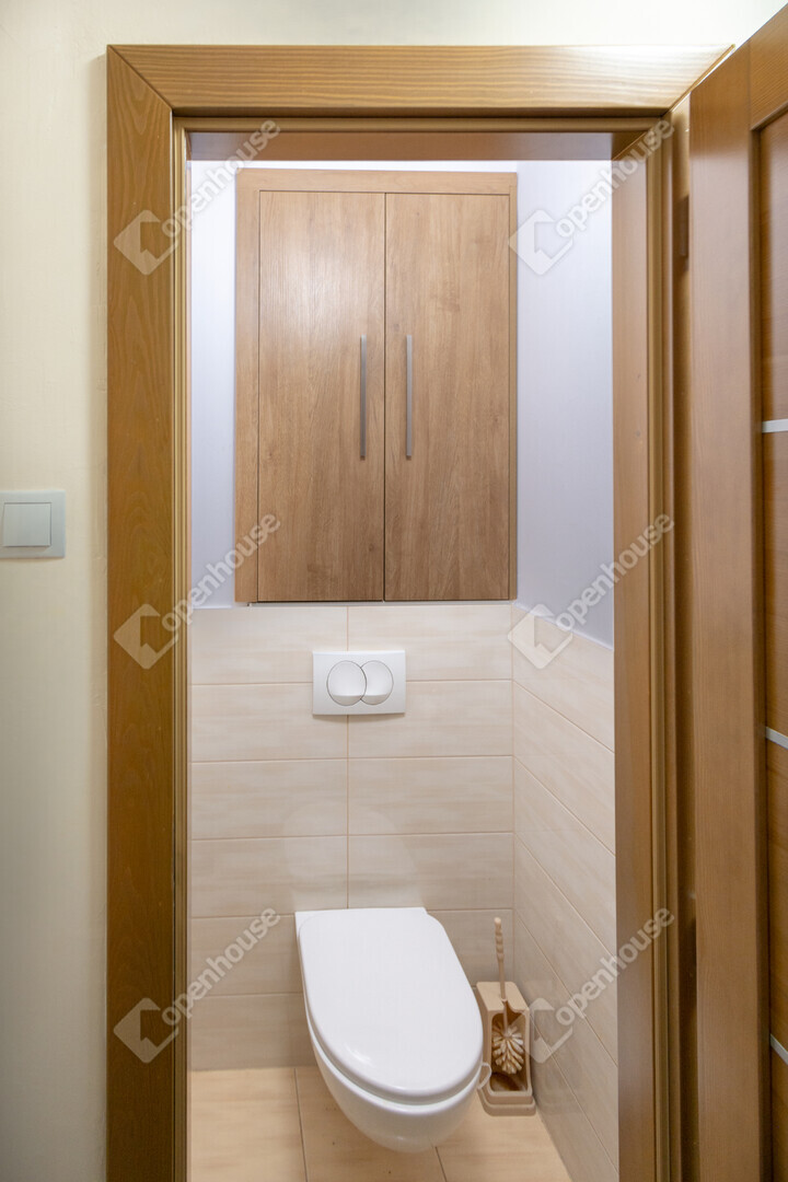 A lakás zuhanyzós fürdőszobával és külön WC-vel rendelkezik, mindkettő modern, esztétikus kivitelben készült.