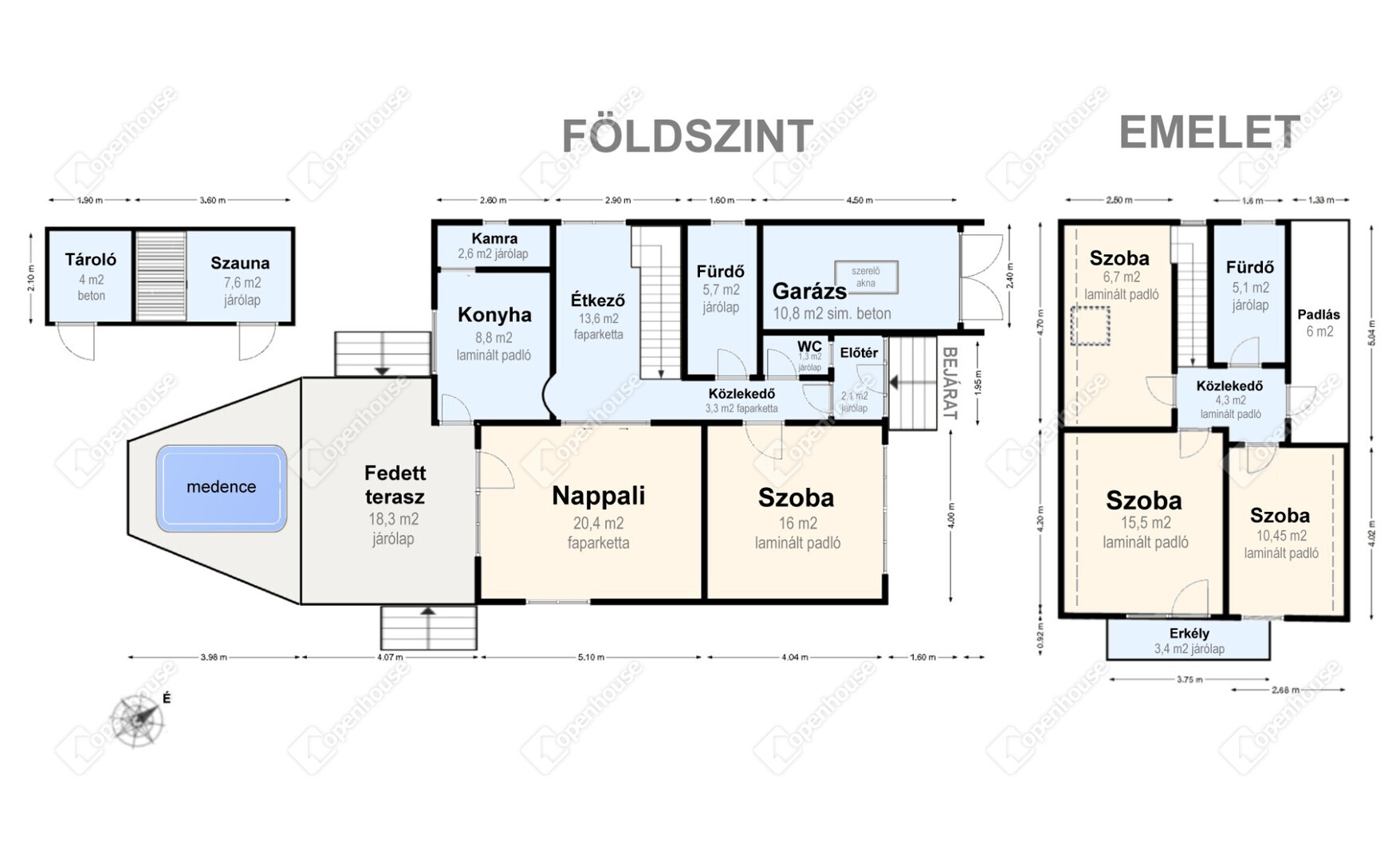 | Garázs | 10.80 m2 | Beton |