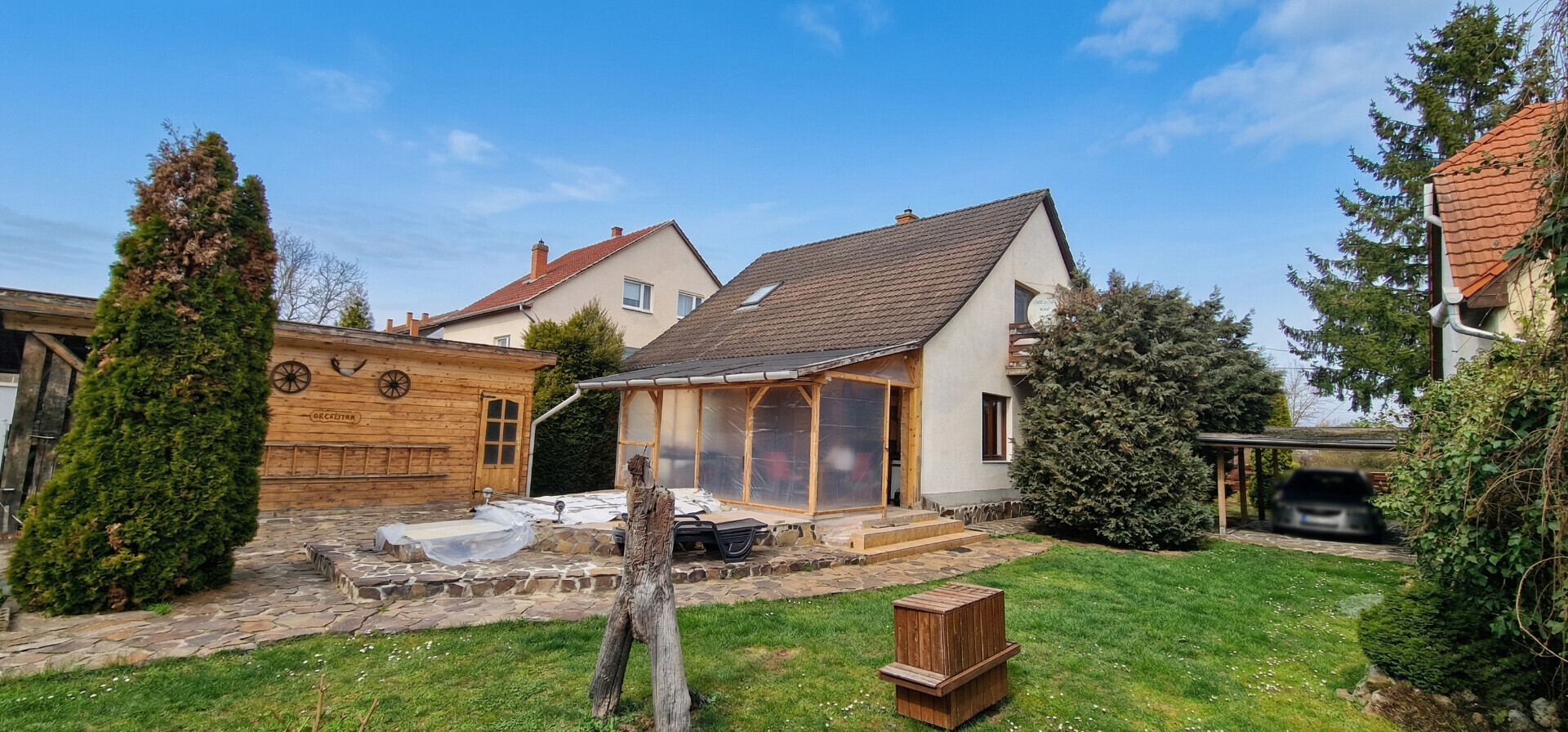 - az ingatlanhoz tartozik egy külön tároló helyiség is, amely a mindennapi praktikusságot szolgálja, plusz egy fedett fatároló is
