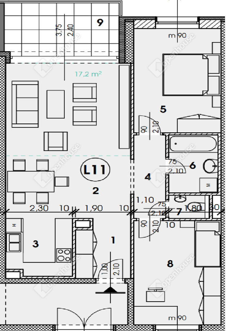 | Erkély | 8.82 m2 | Járólap |