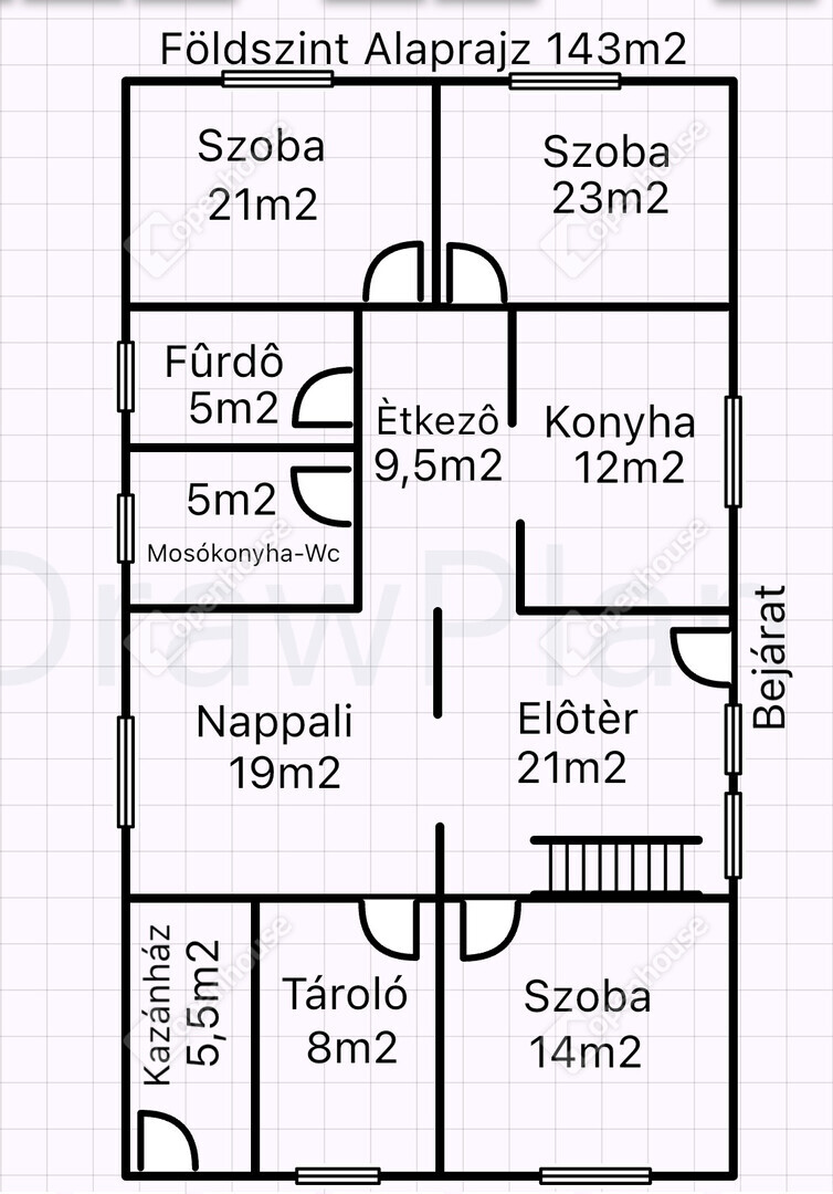 -Helyiségek 263m2 alapterületen: Földszinten: három szoba, konyha, étkező, fürdő- wc,mosókonyha,nappali,előtér,tároló,kazánház,Tetőtérben: három szoba,nappali.Telek területe: 871m2.