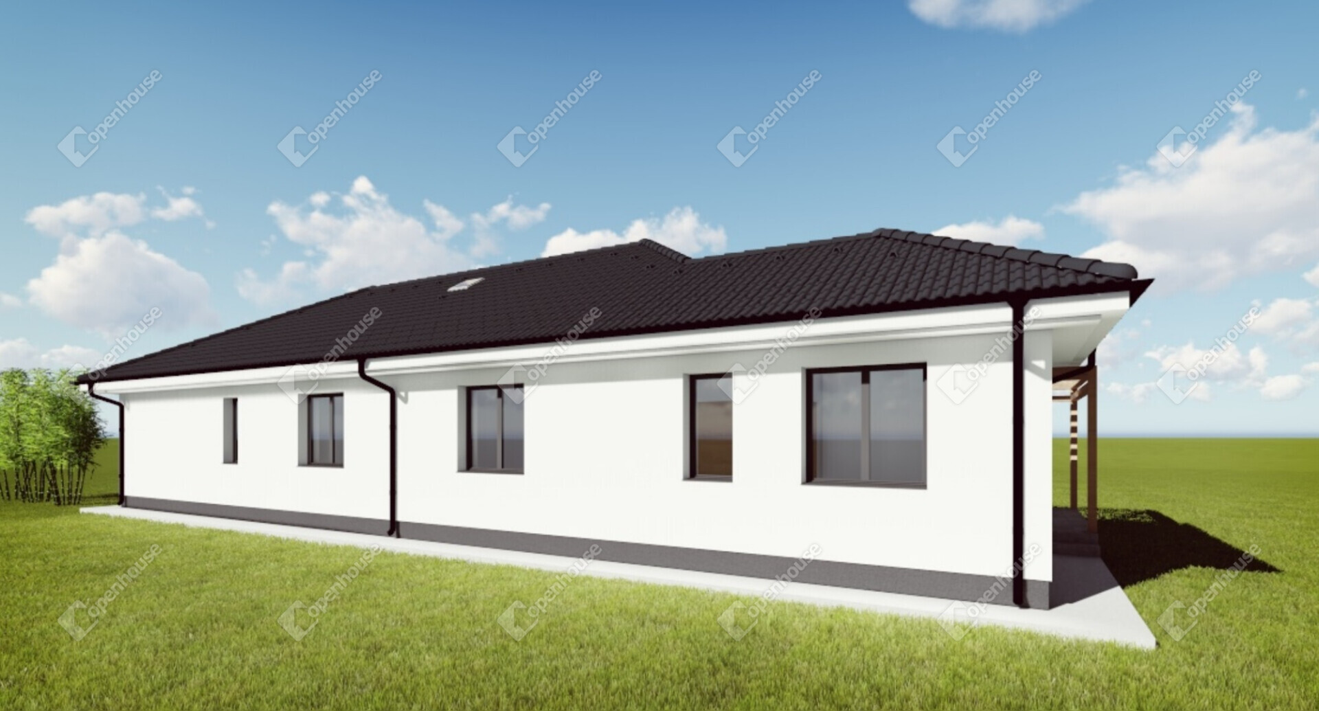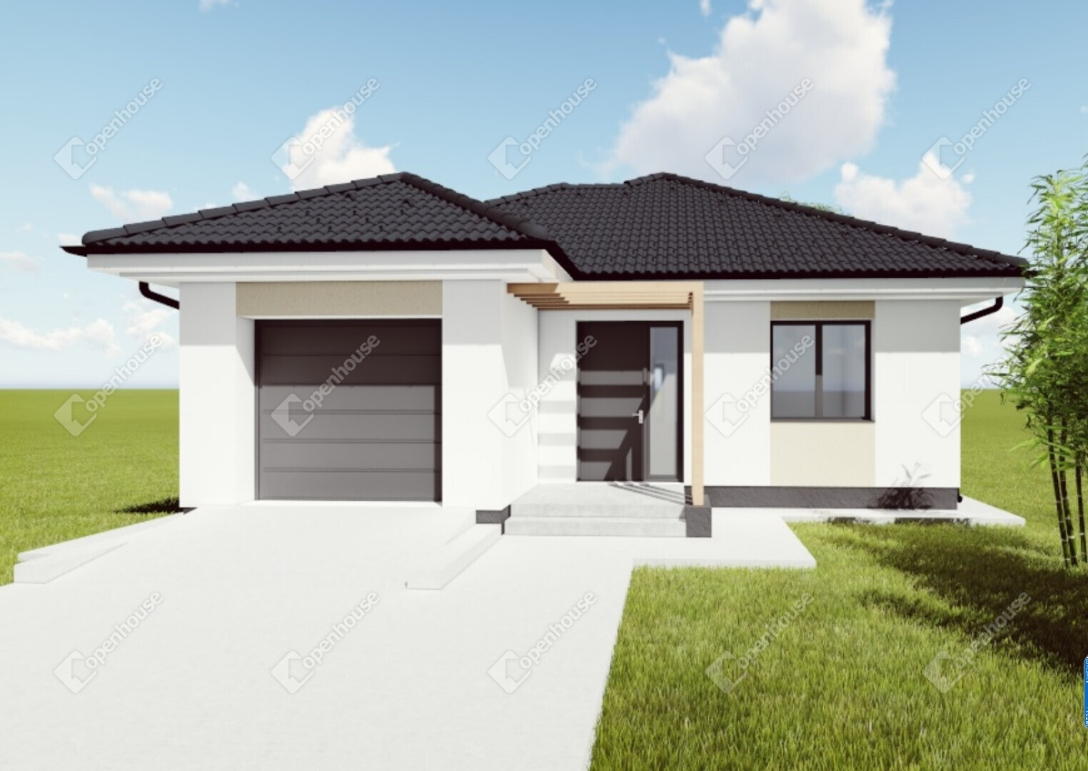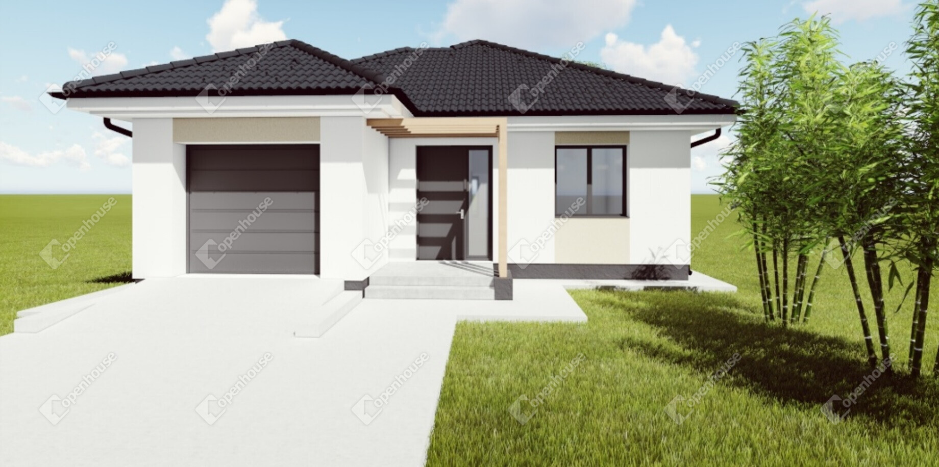 A földszintes kialakítás kényelmes közlekedést biztosít a ház minden helyisége között.