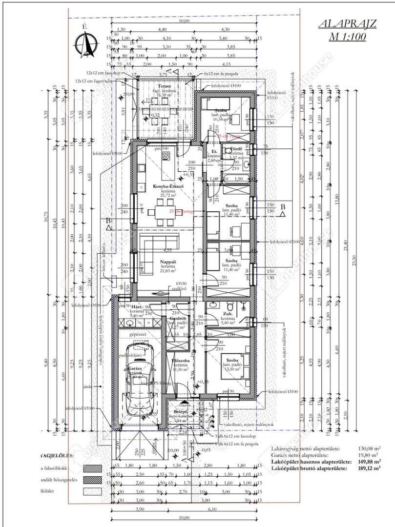 A ház nettó hasznos lakó területe 130 nm.