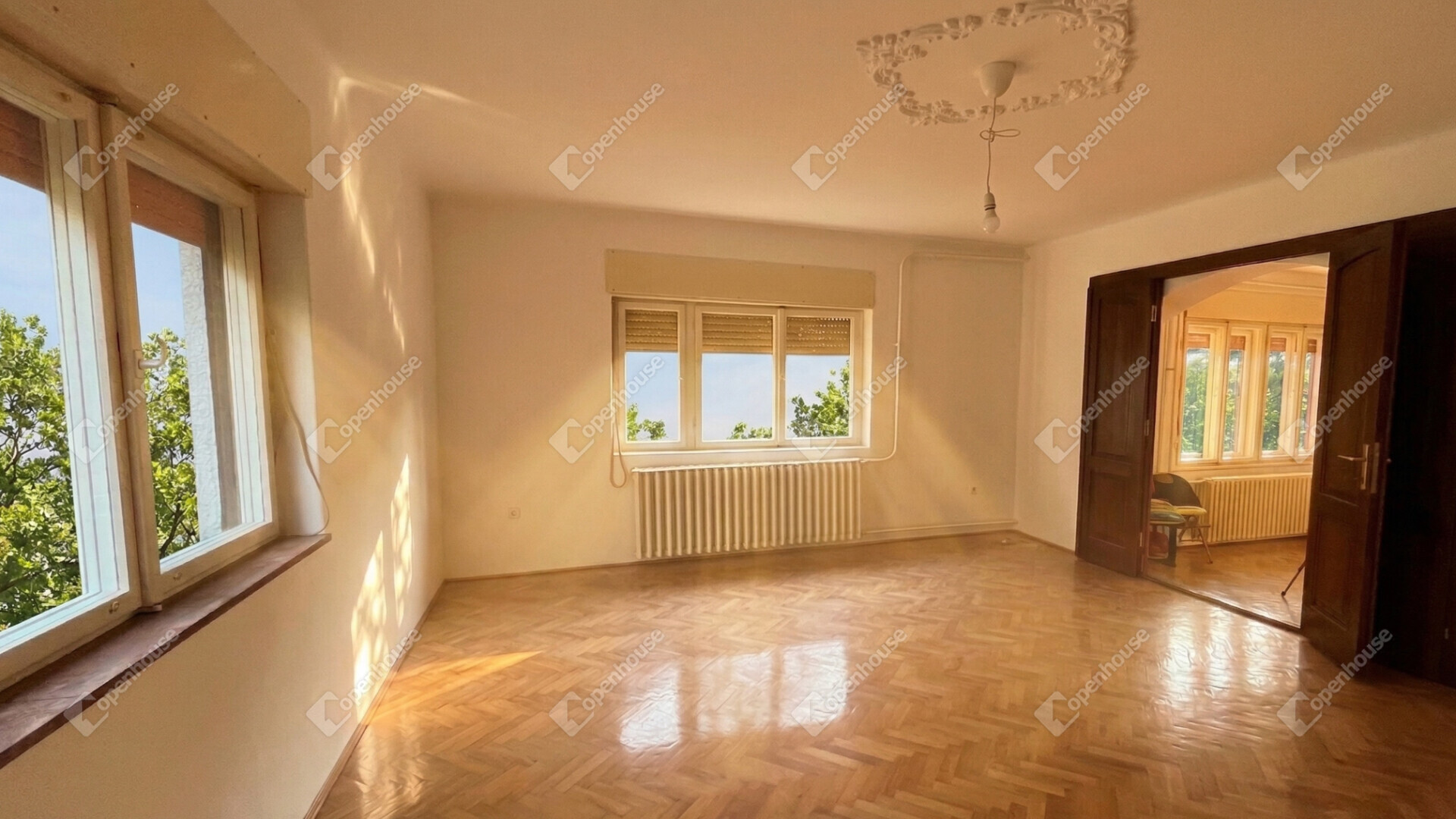 - a két nappaliból teraszajtó nyílik a hangulatos, zöld udvarra, az emeleten két loggiáról nyílik kilátás a város felé