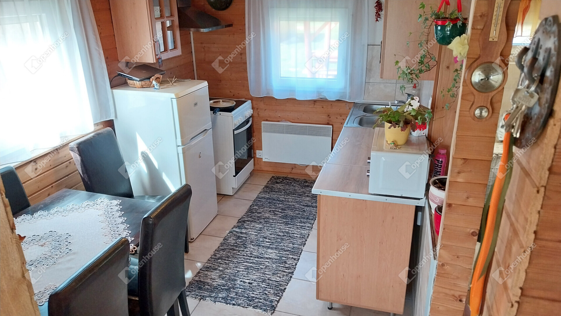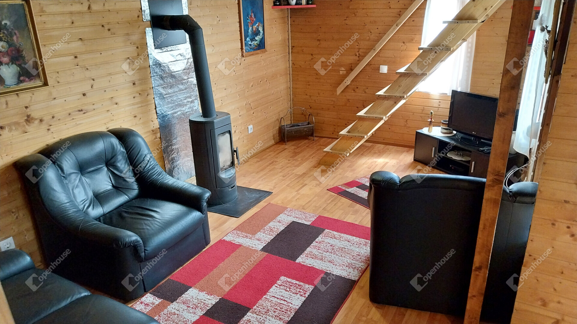- minden helyiségben elektromos panel biztosítja a meleget, a nappaliban elhelyezett fatüzelésű kályha pedig az egész házat a tetőtérrel együtt hatékonyan befűti.