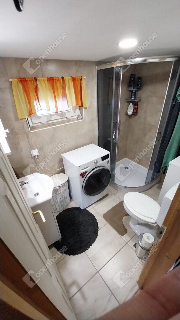 - fürdőszobában helyet kapott egy zuhany kabin, WC, mosdó és még egy mosógép is elfér