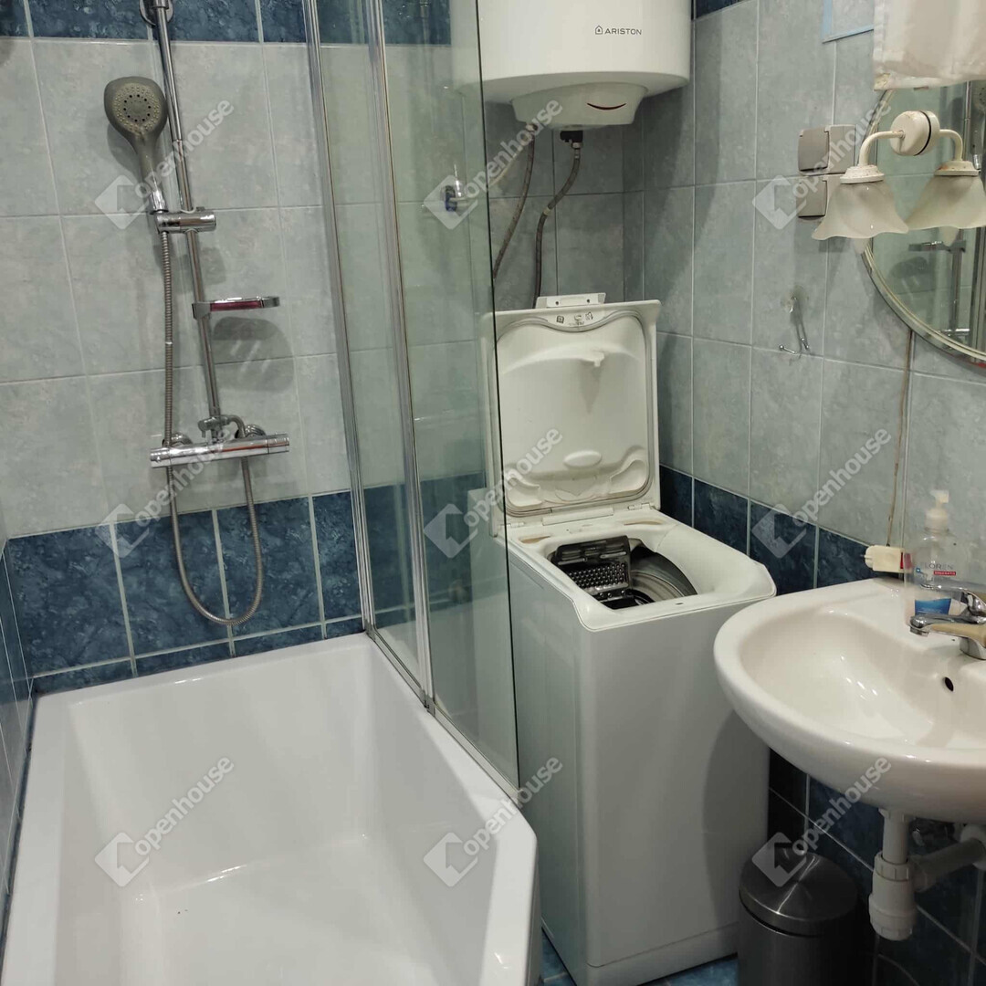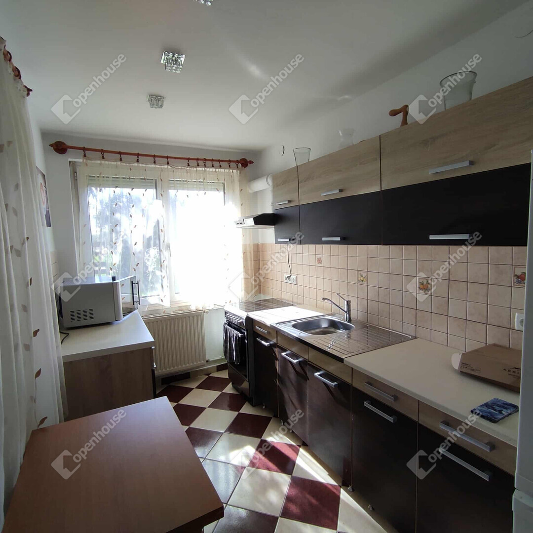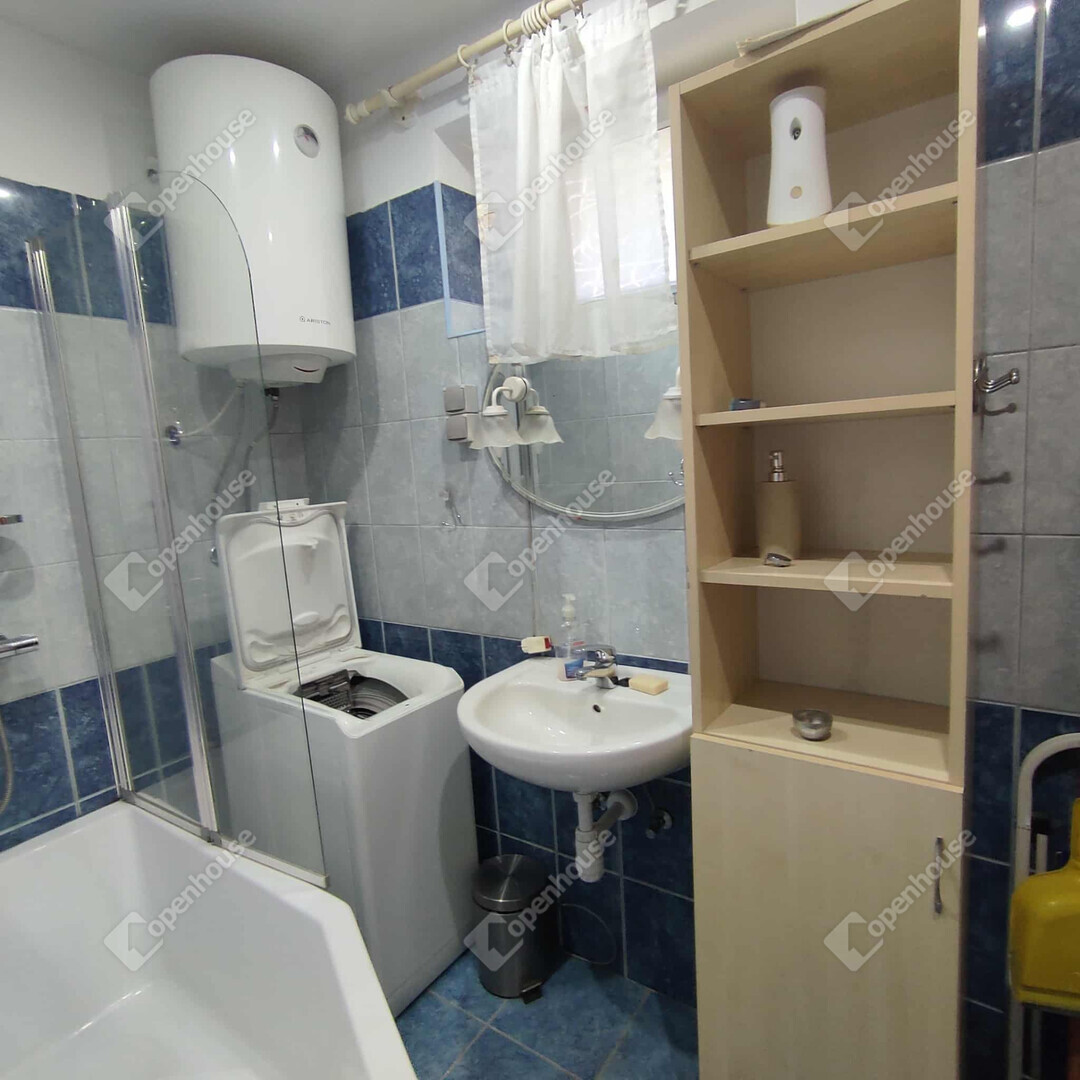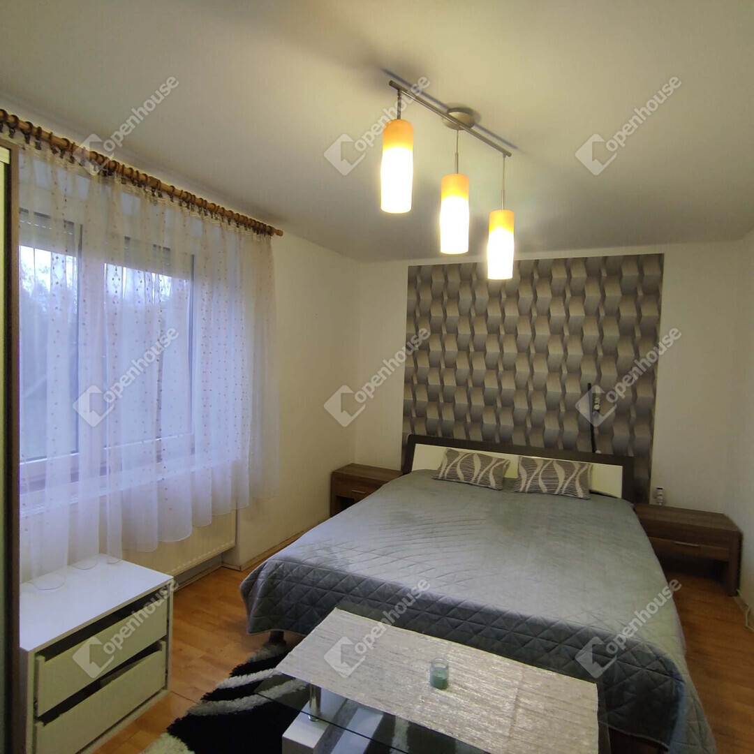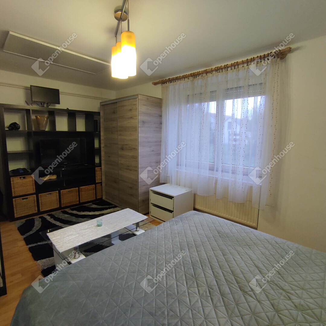 A lakásban egy tágas hálószoba, előszoba, konyha, fürdő és a fürdőből nyíló WC található.