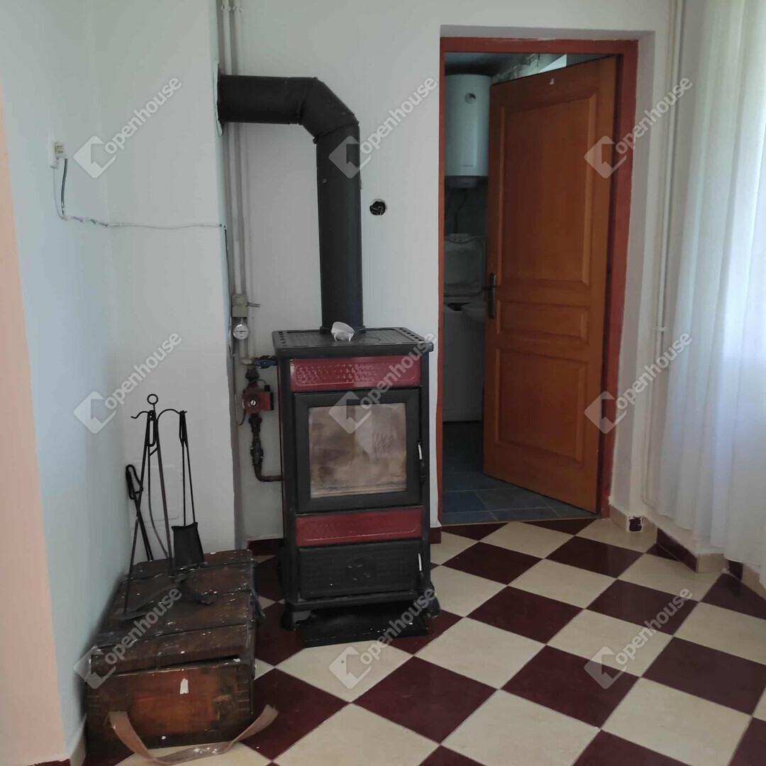 A megfelelő hőmérsékletet az előszobában elhelyezett vízteres kandalló biztosítja radiátoros hőleadással.