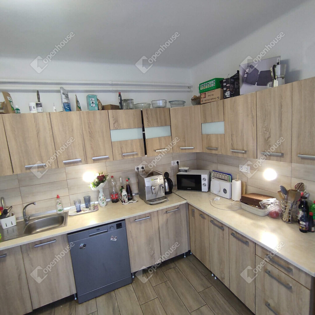 Konyha szintén teljes felújítást kapott, új beépített konyhabútor gépekkel, új burkolat. A konyhabútor a vételár részét képezi.
