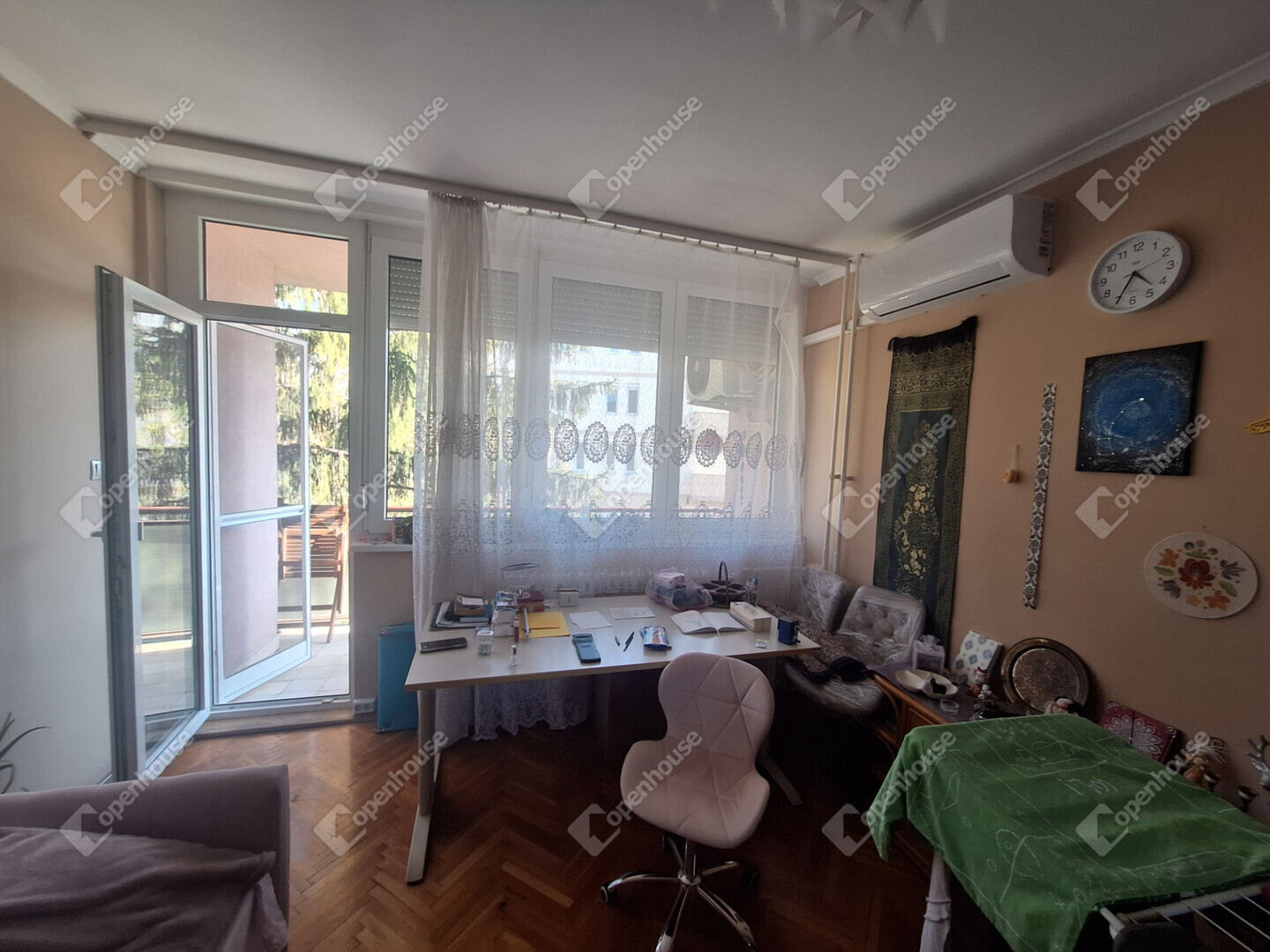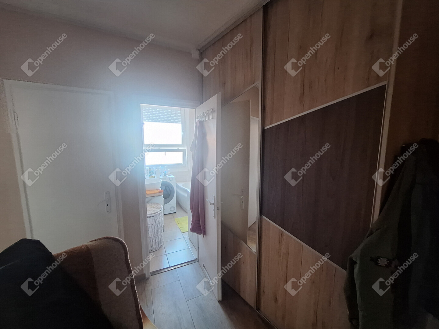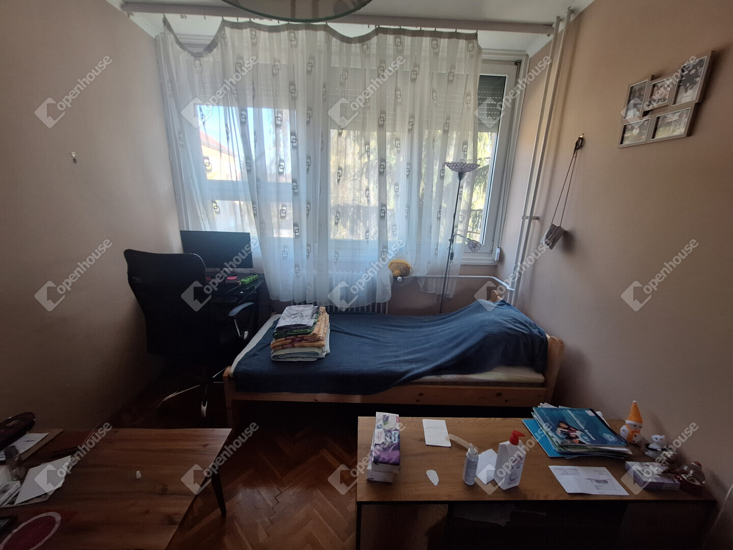 A lakás elosztása jó, minden szoba külön nyílik. A szobákban jó minőségű faparketta, a többi helyiség járólapos.
