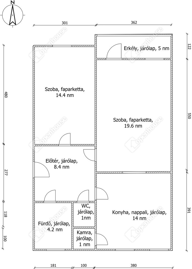 | Szoba | 19.60 m2 | Faparketta |
